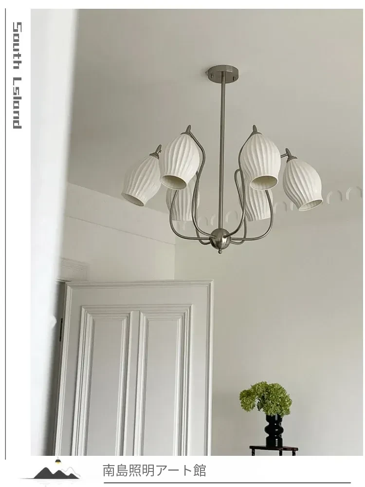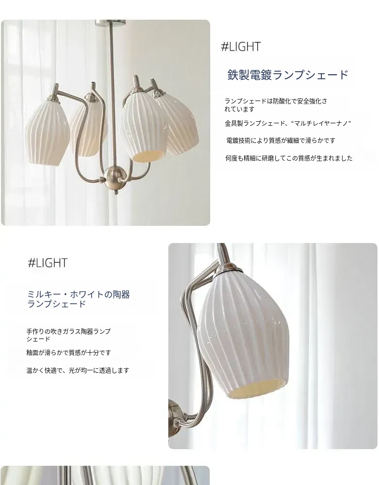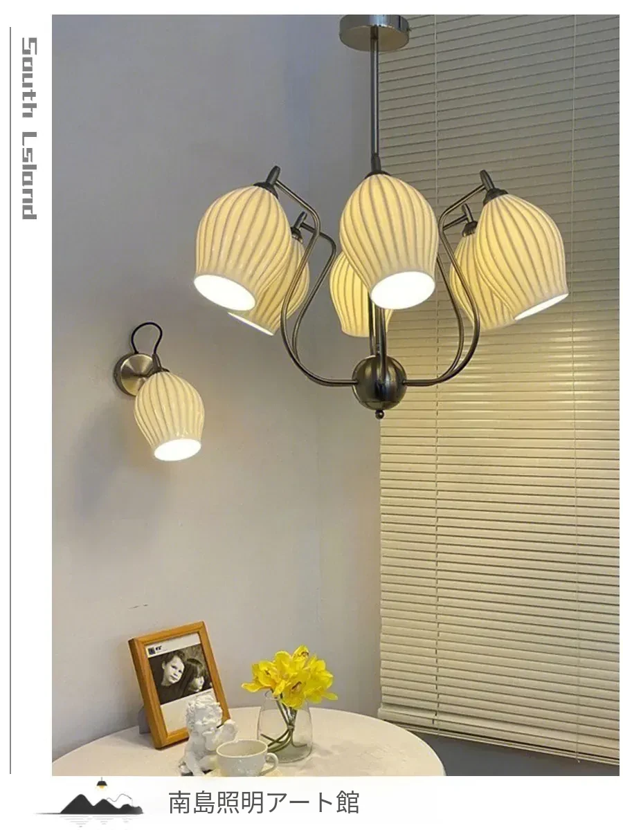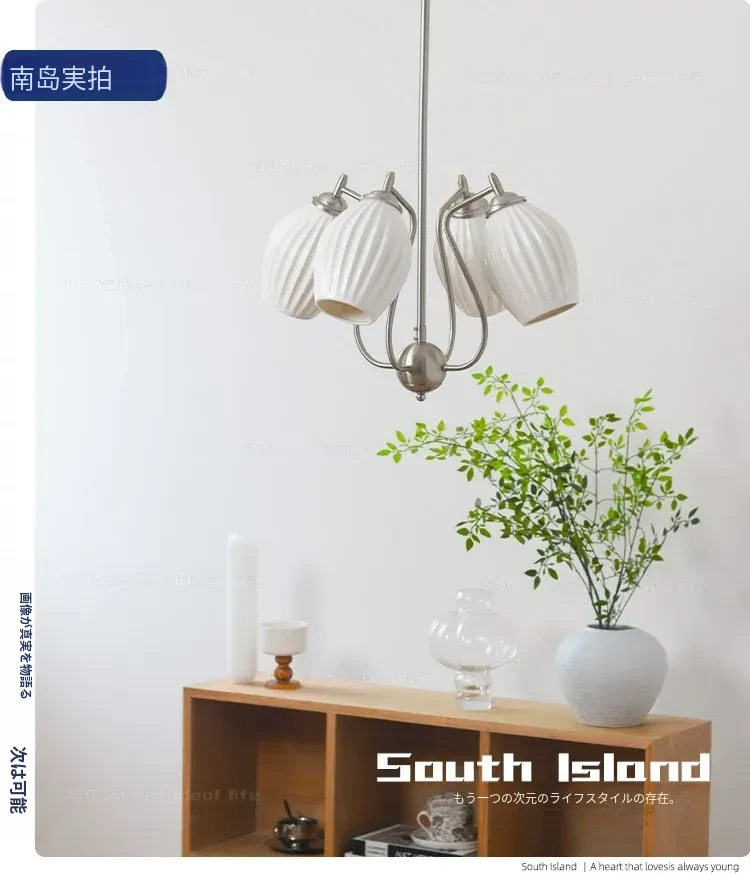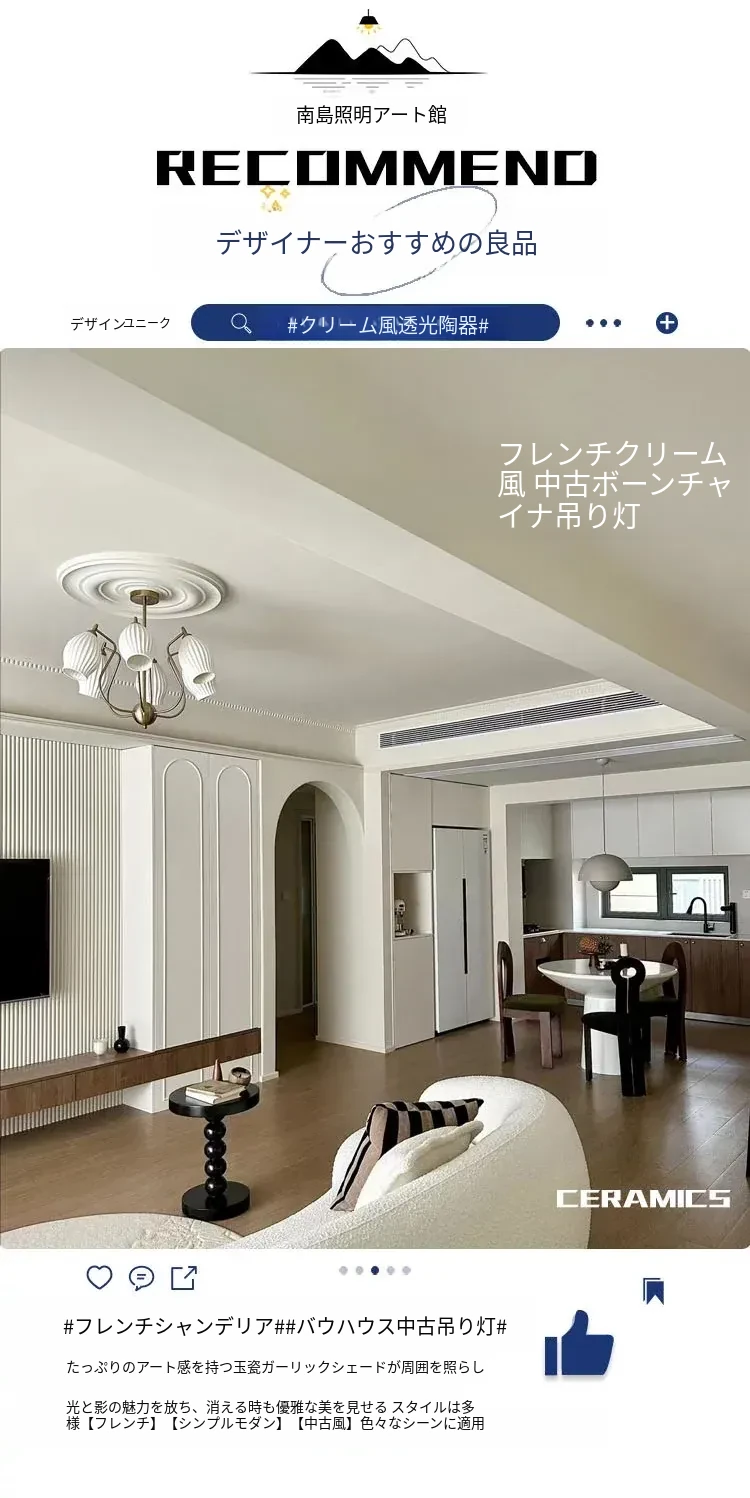 フランス風ヴィンテージボーンチャイナシャンデリア クリームカラー モダンリビング・書斎・ダイニングに最適 バウハウス陶器デザイン 主寝室にぴったりなガーリックライト