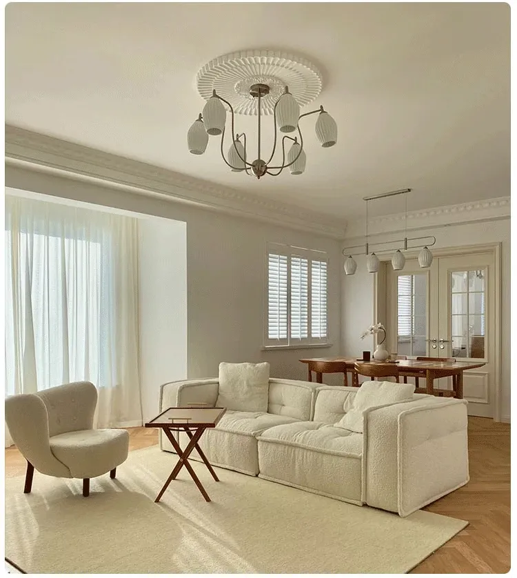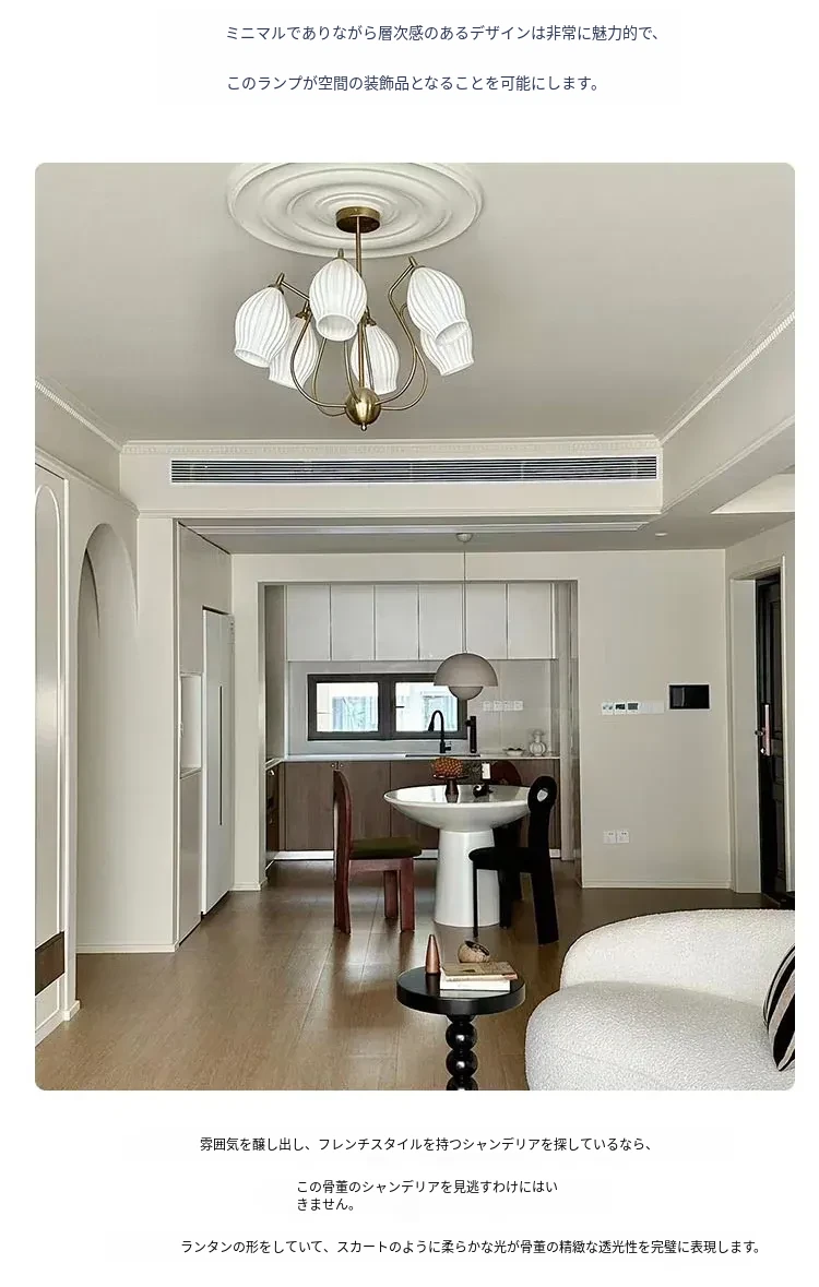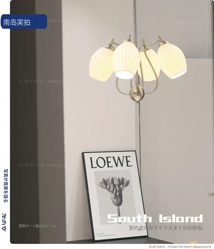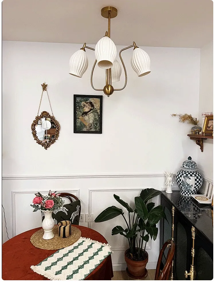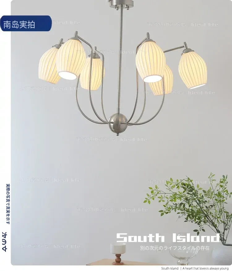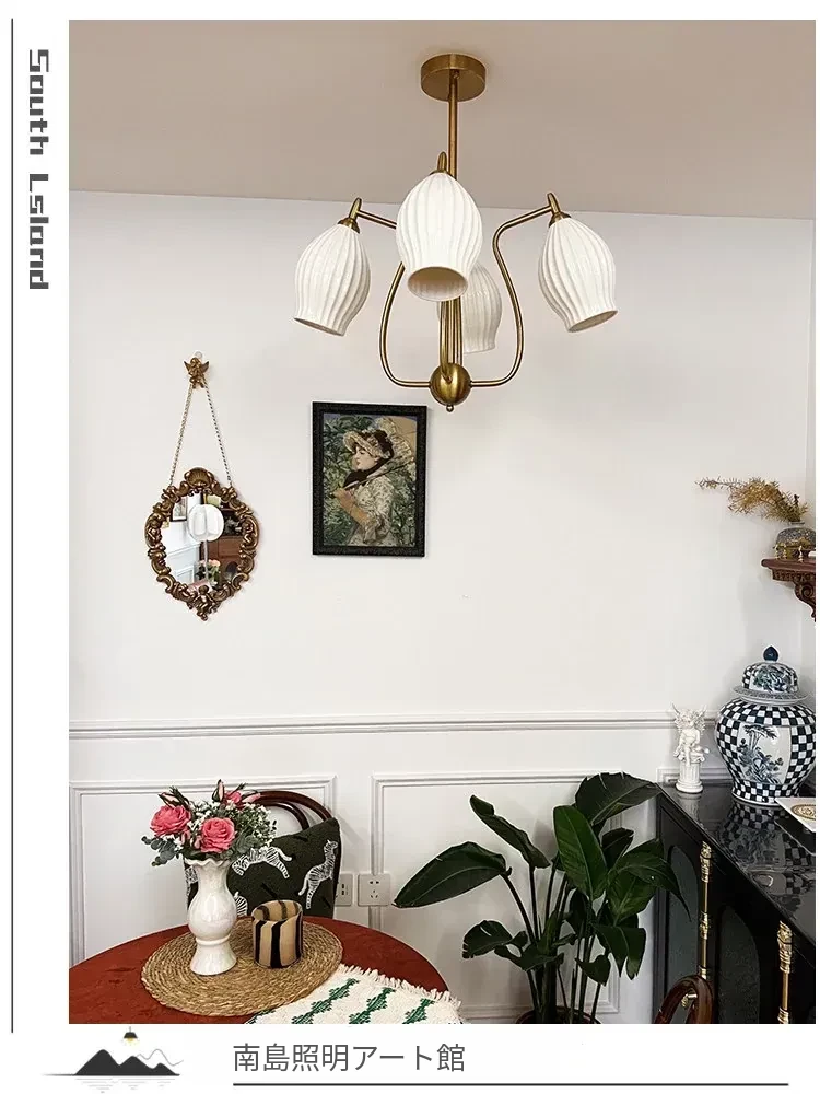 フランス風ヴィンテージボーンチャイナシャンデリア クリームカラー モダンリビング・書斎・ダイニングに最適 バウハウス陶器デザイン 主寝室にぴったりなガーリックライト