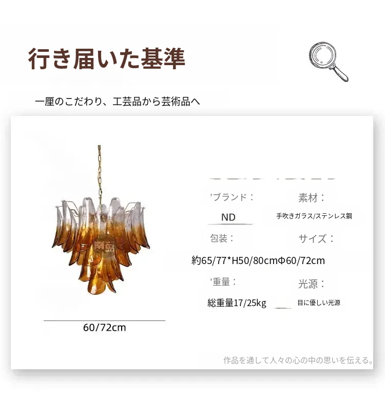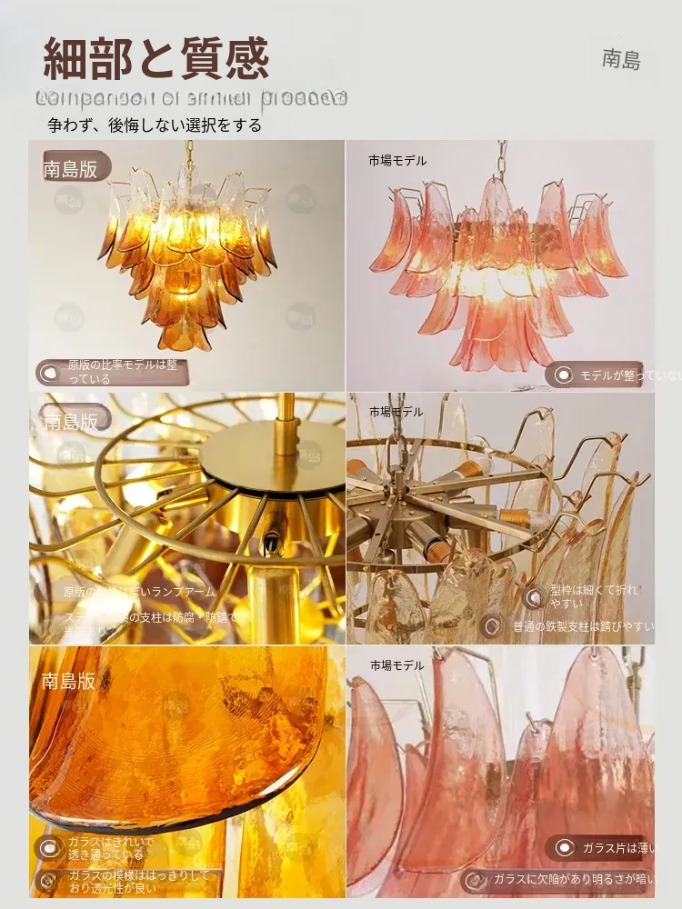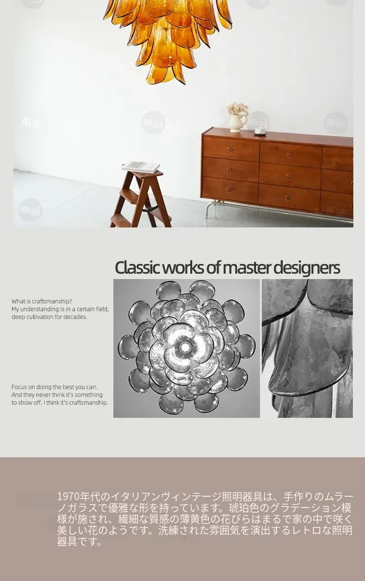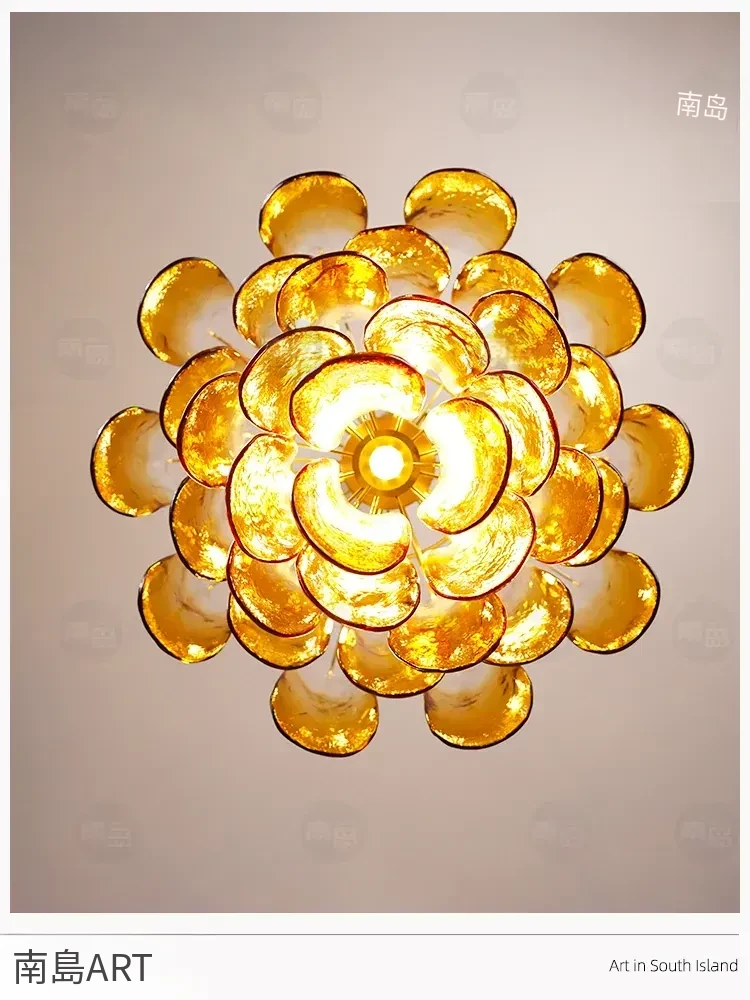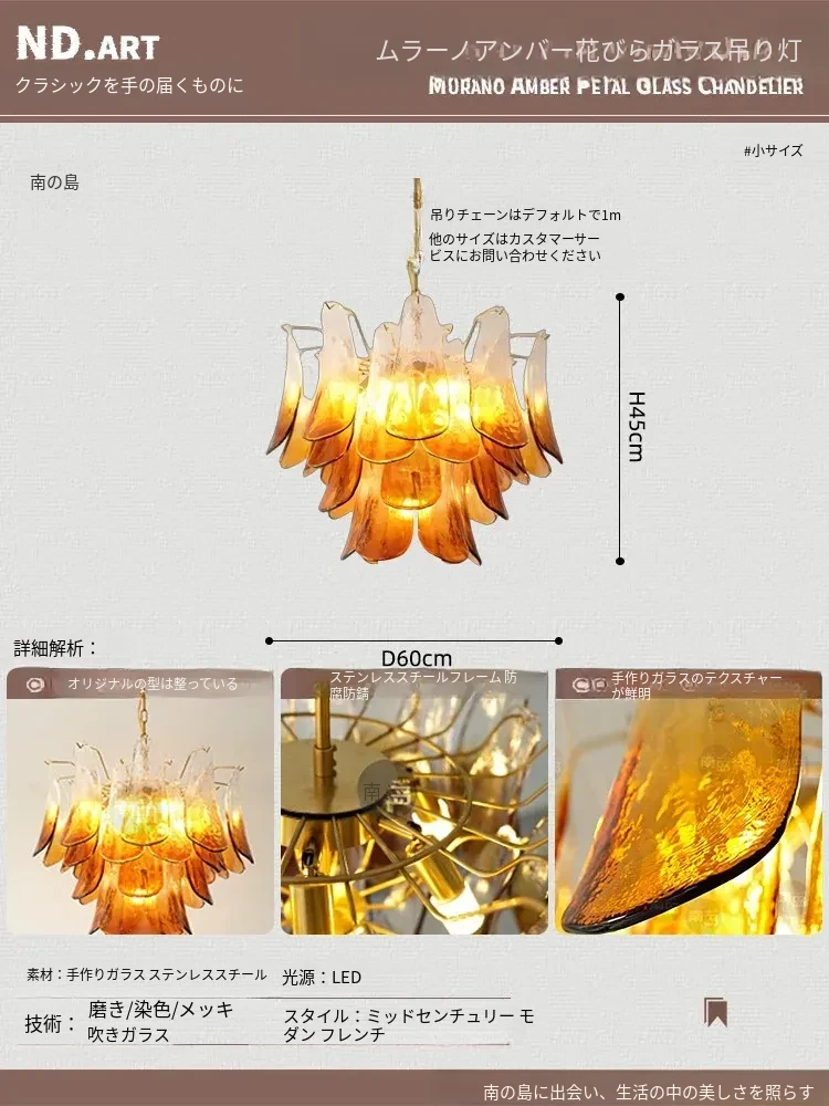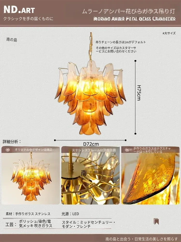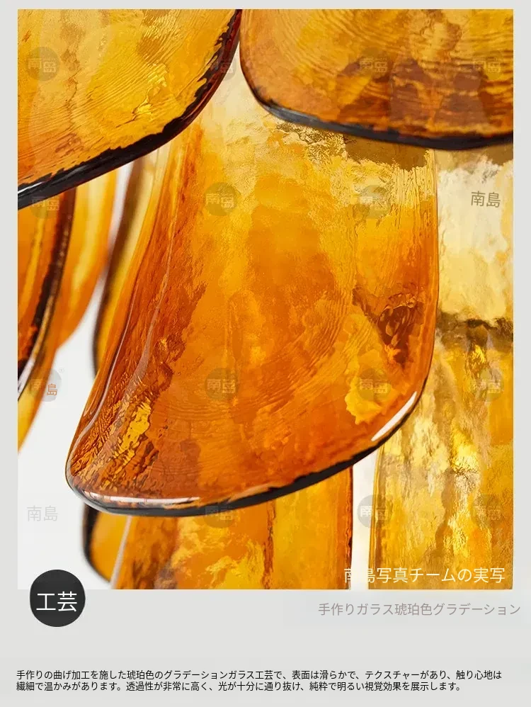 フランス風ヴィンテージMuranoムラノ琥珀花びらガラスシャンデリア - レトロなデザインでリビング、寝室、書斎、ダイニングを華やかに彩る美しい照明。高級感溢れるインテリアを演出します!