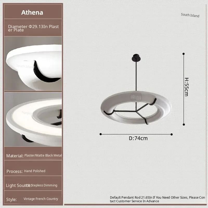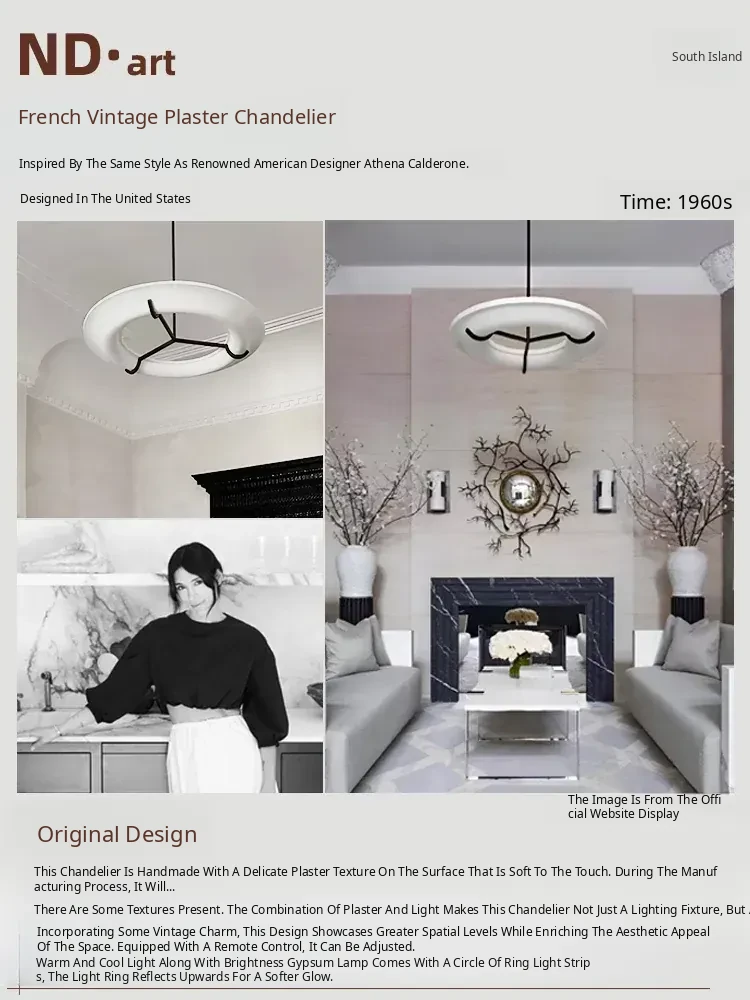 French Vintage Plaster Chandelier - Athena Designer Cream Aesthetic, Ideal for Living Room, Villa Bedroom, and Dining Room Lighting