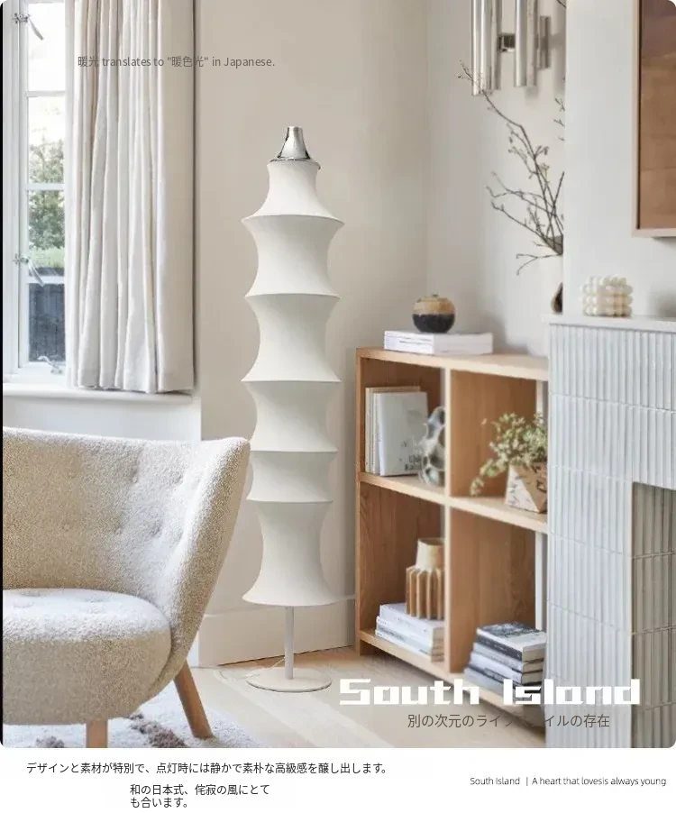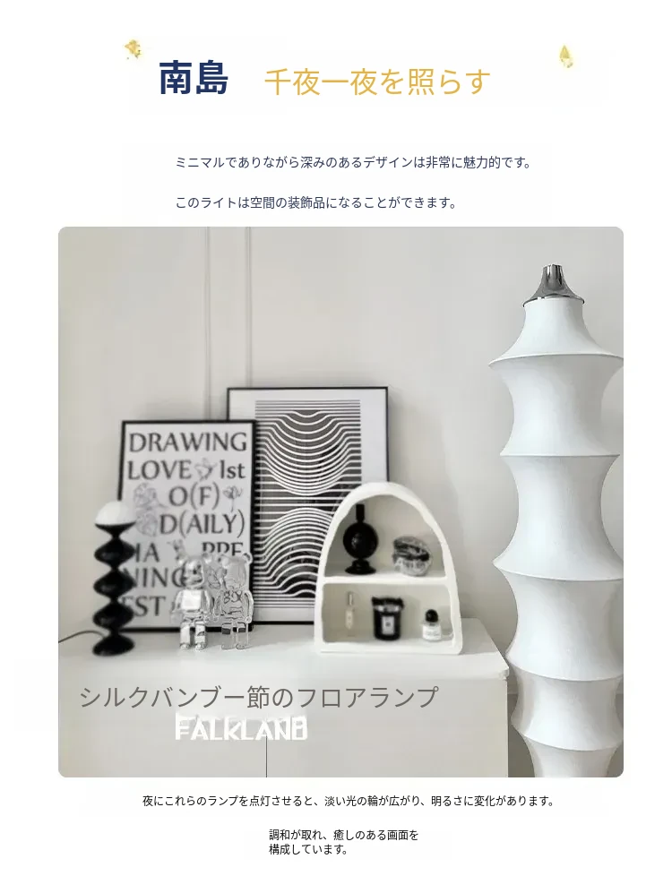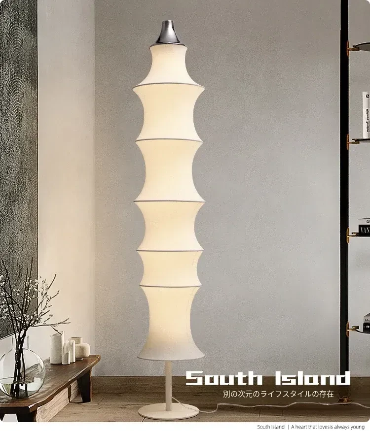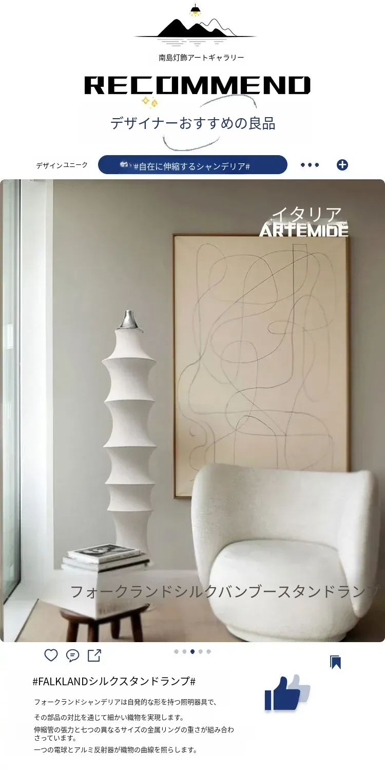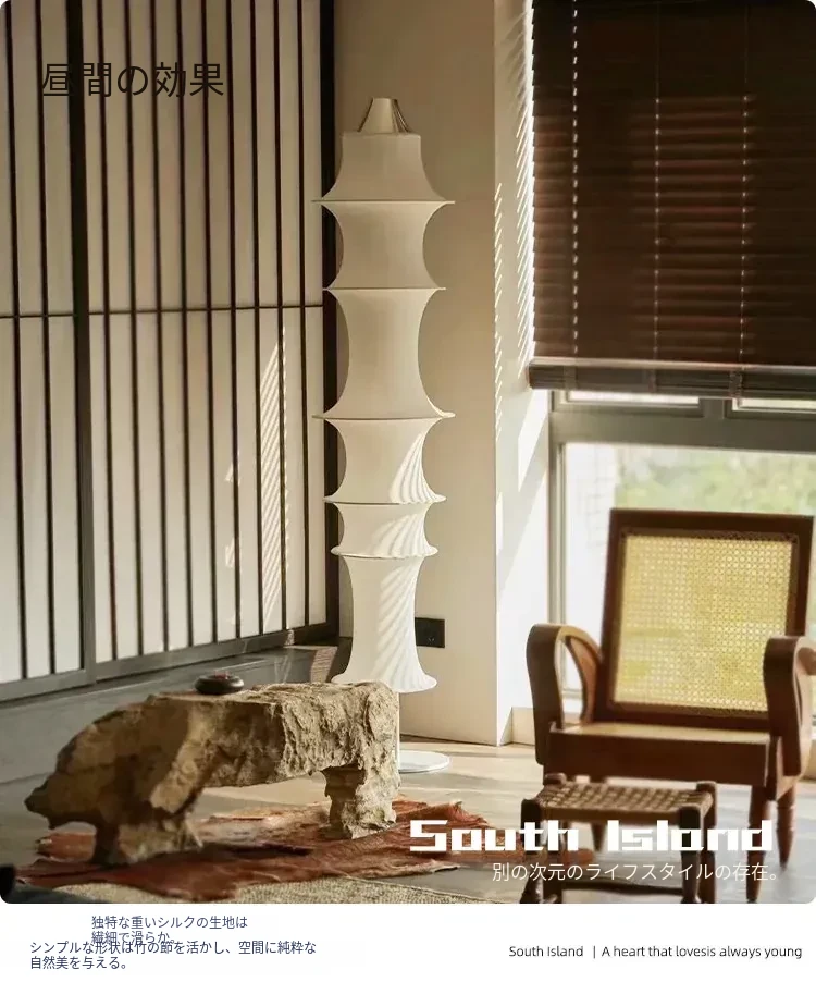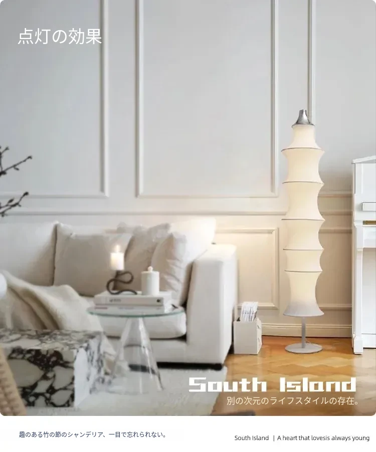 イタリアンデザインのシルクバンブーフロアランプ - 中古の侘び寂びスタイル、寝室やリビングにぴったりの洗練された雰囲気を演出!