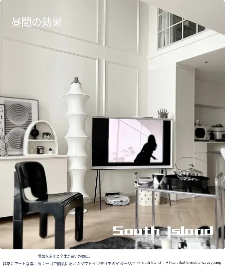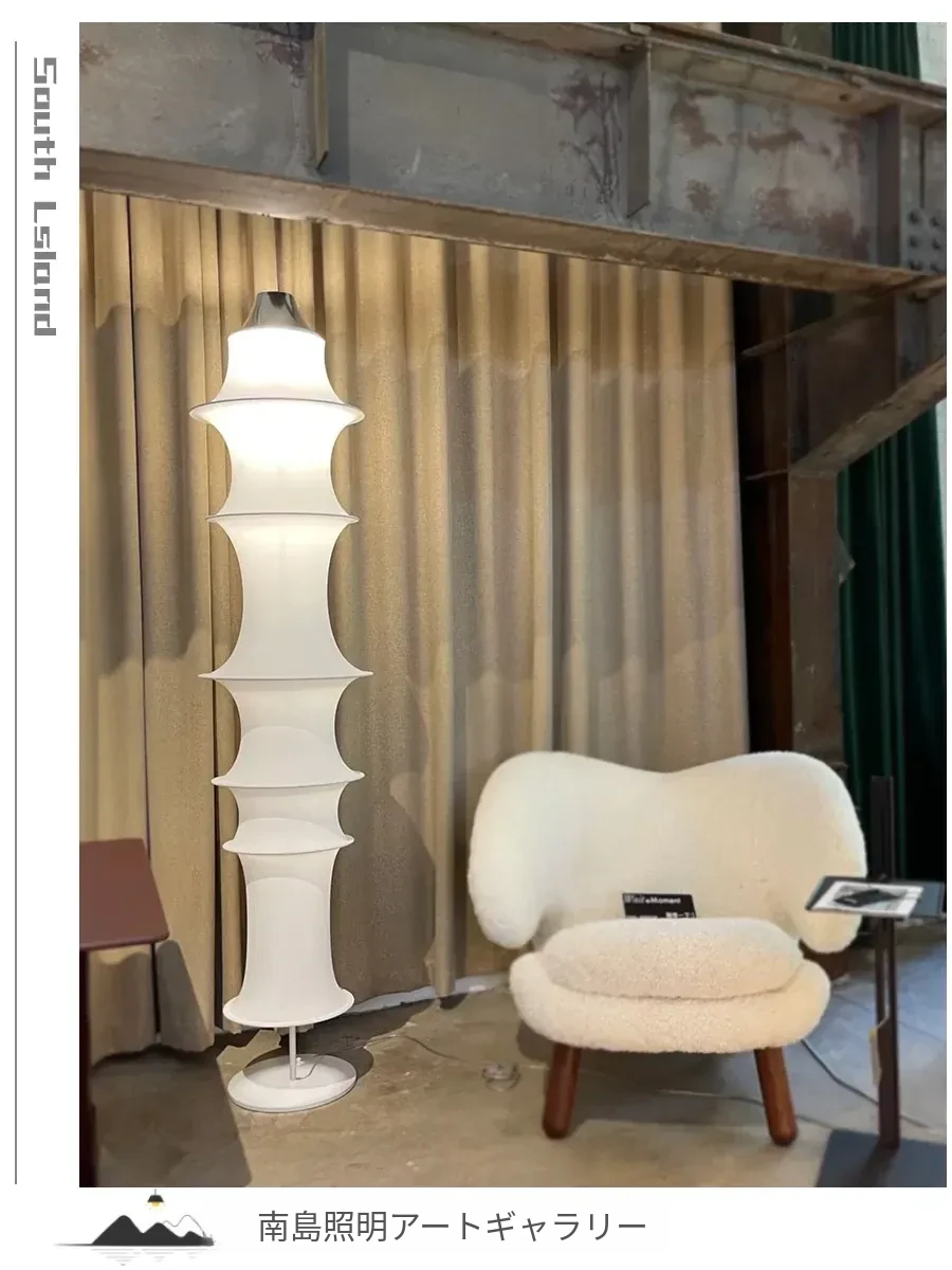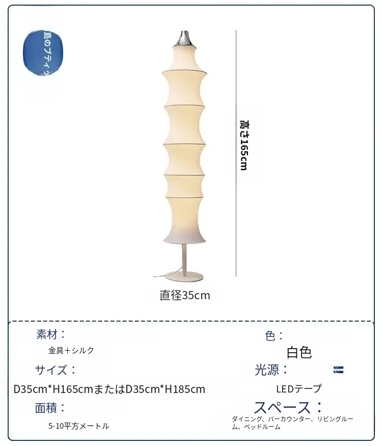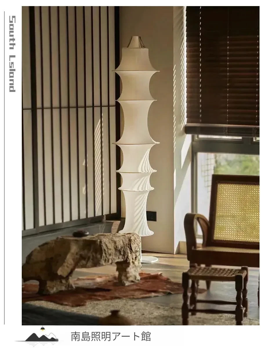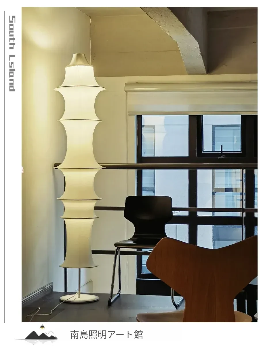 イタリアンデザインのシルクバンブーフロアランプ - 中古の侘び寂びスタイル、寝室やリビングにぴったりの洗練された雰囲気を演出!