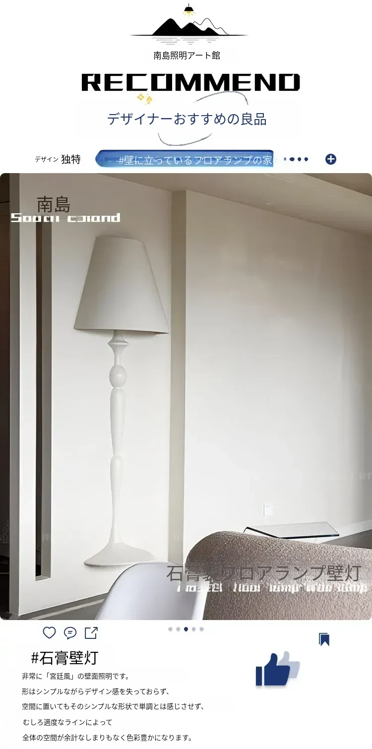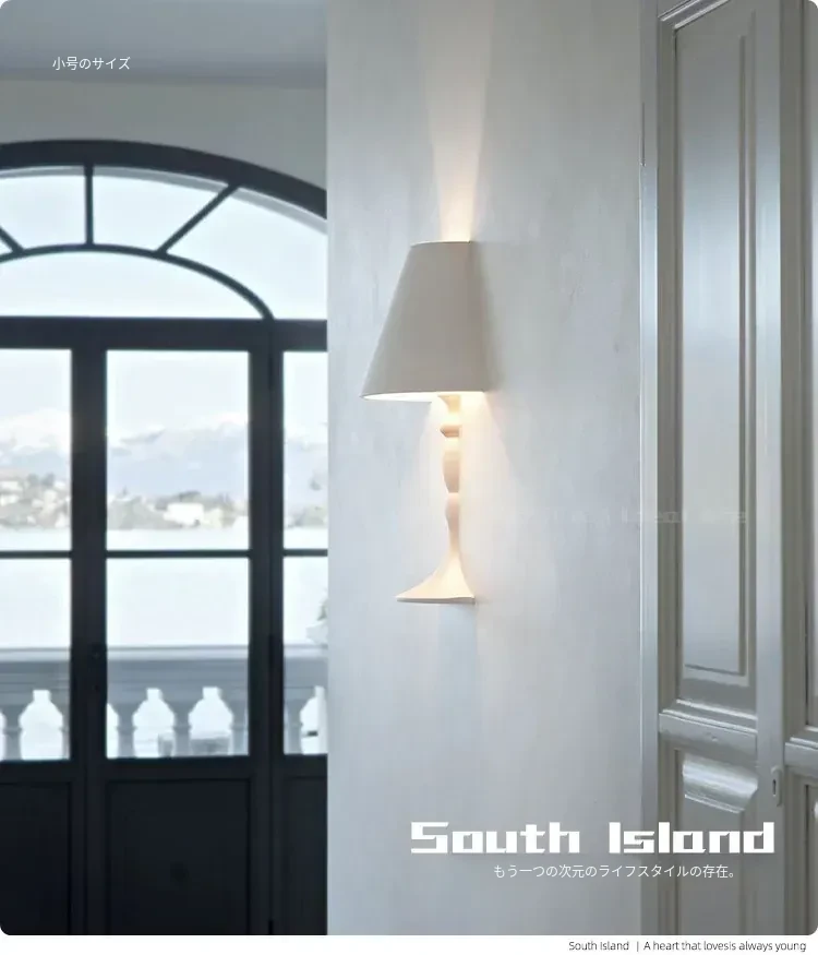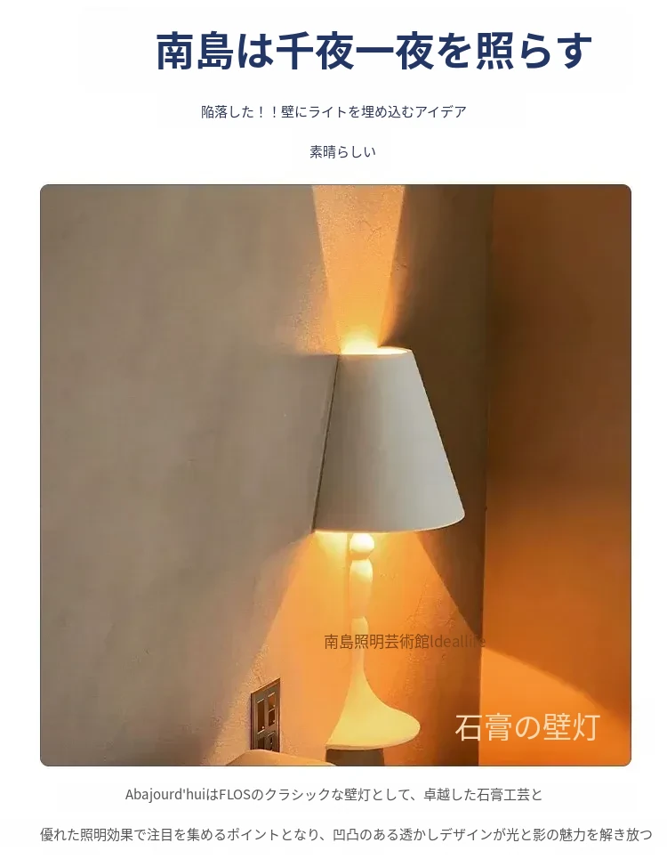 イタリア製フローレスのリビング階段壁埋め込み式石膏ウォールランプ - フレンチシンプルデザインの書斎や寝室にぴったりのスタイリッシュなフロアライト!
