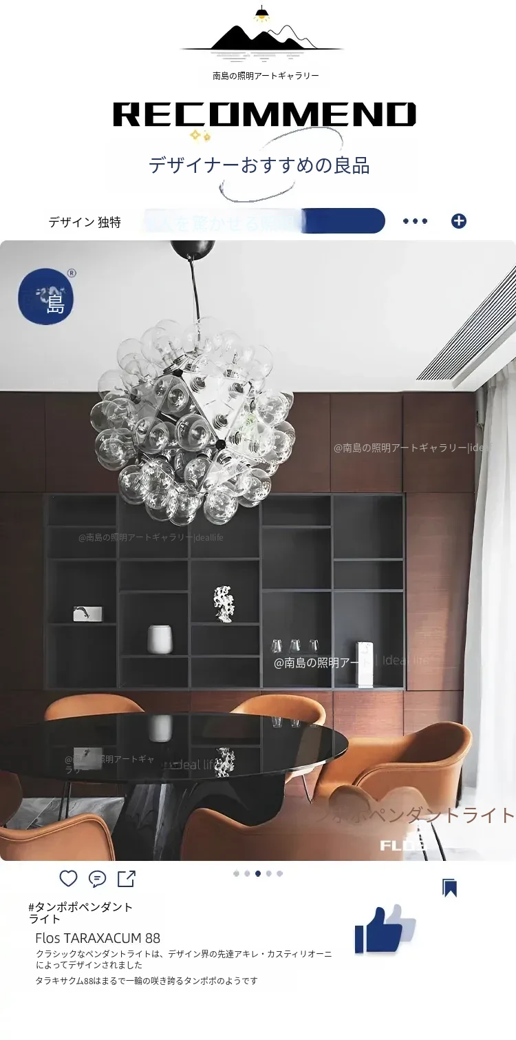イタリア製Flo Taraxacumダンデライオンシャンデリア - 中古のリビングルーム照明、ヴィラの階段、フレンチスタイルのダイニングルームに最適!洗練されたデザインで上質な空間を演出します。