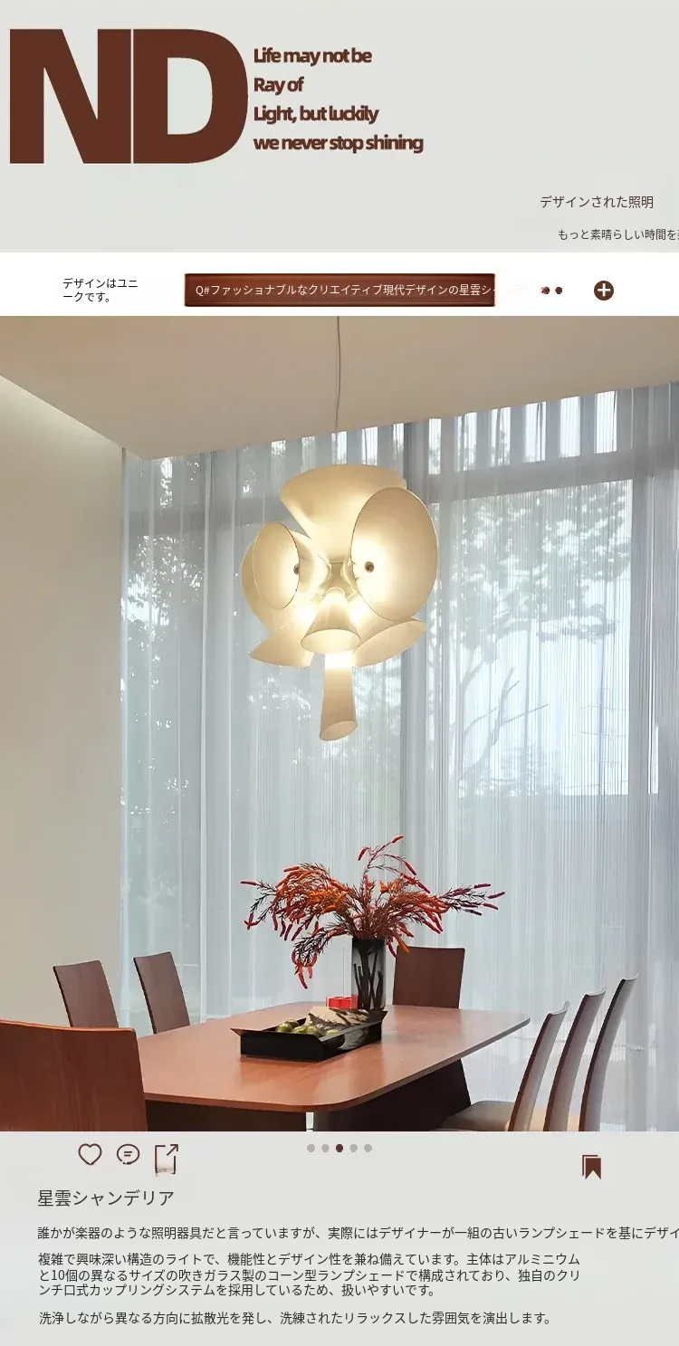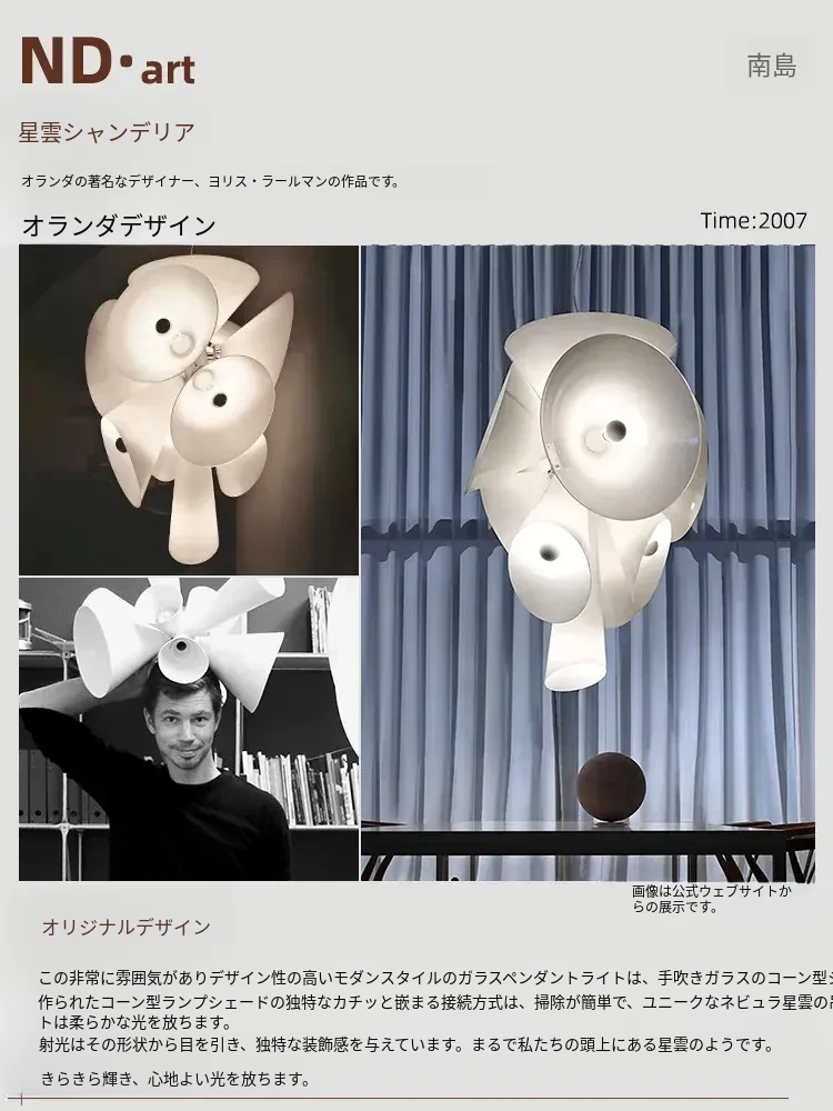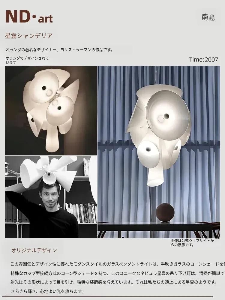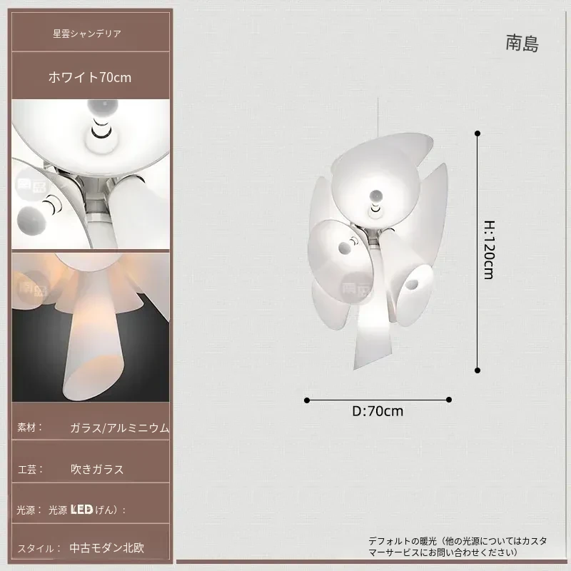 イタリア製ネビュラシャンデリア - フレンチ・北欧デザインの洗練されたガラスランプ。リビング、ダイニング、階段、別荘に最適!ヴィンテージ感溢れるスタイルで、優雅な空間を演出します。
