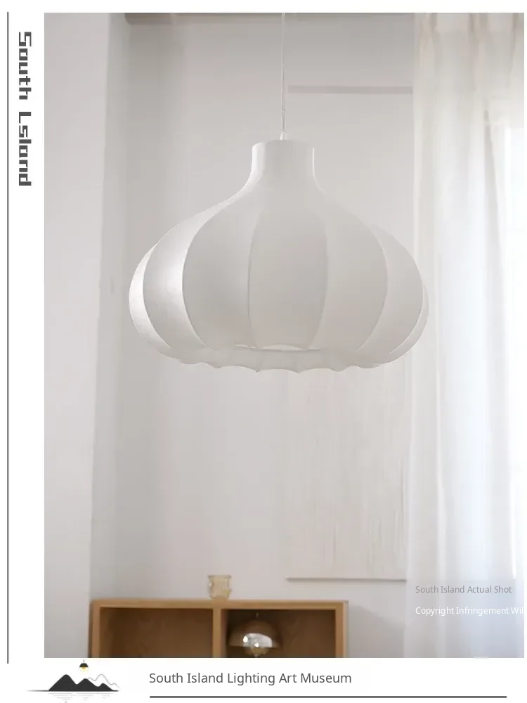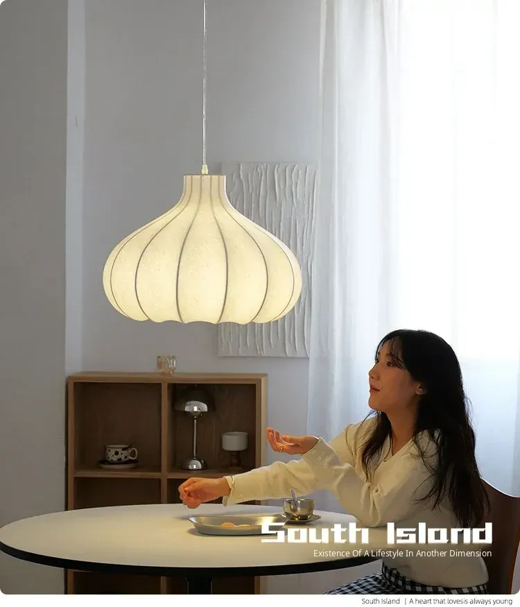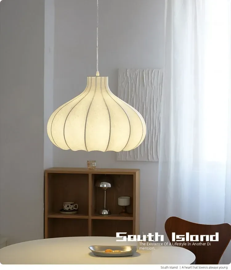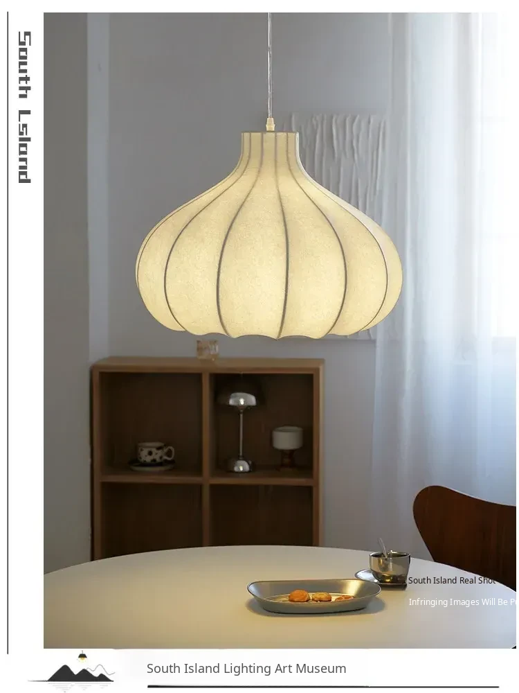 Japanese Vintage Onion Silk Pendant Lamp - Wabi-Sabi Style for Bedroom, French Retro Study, and Dining Room Ambiance Lighting