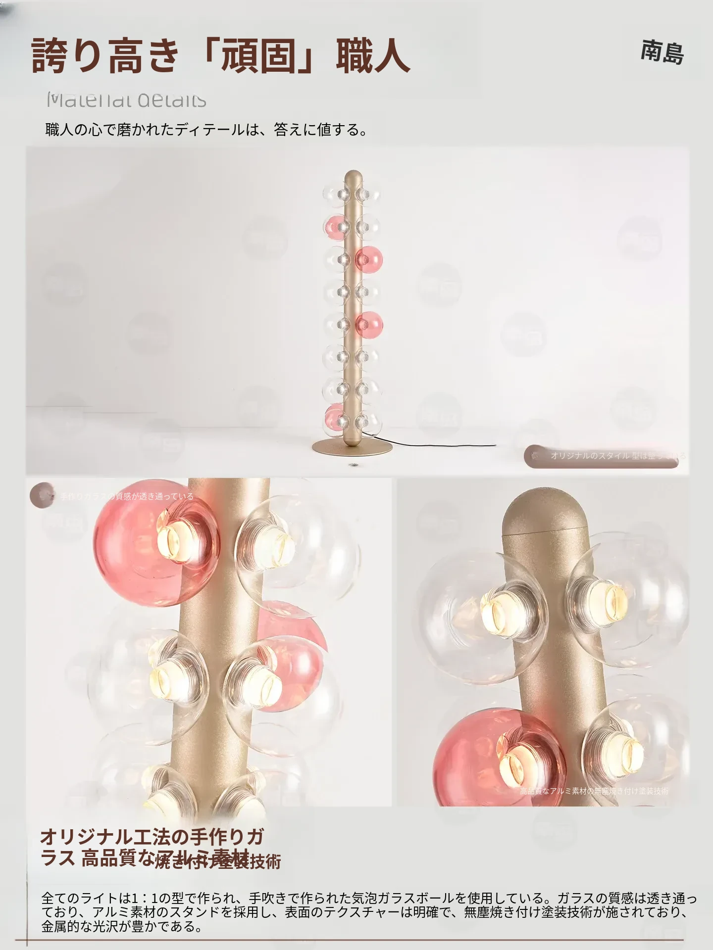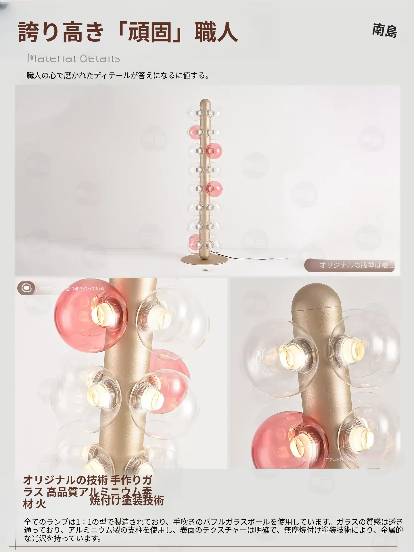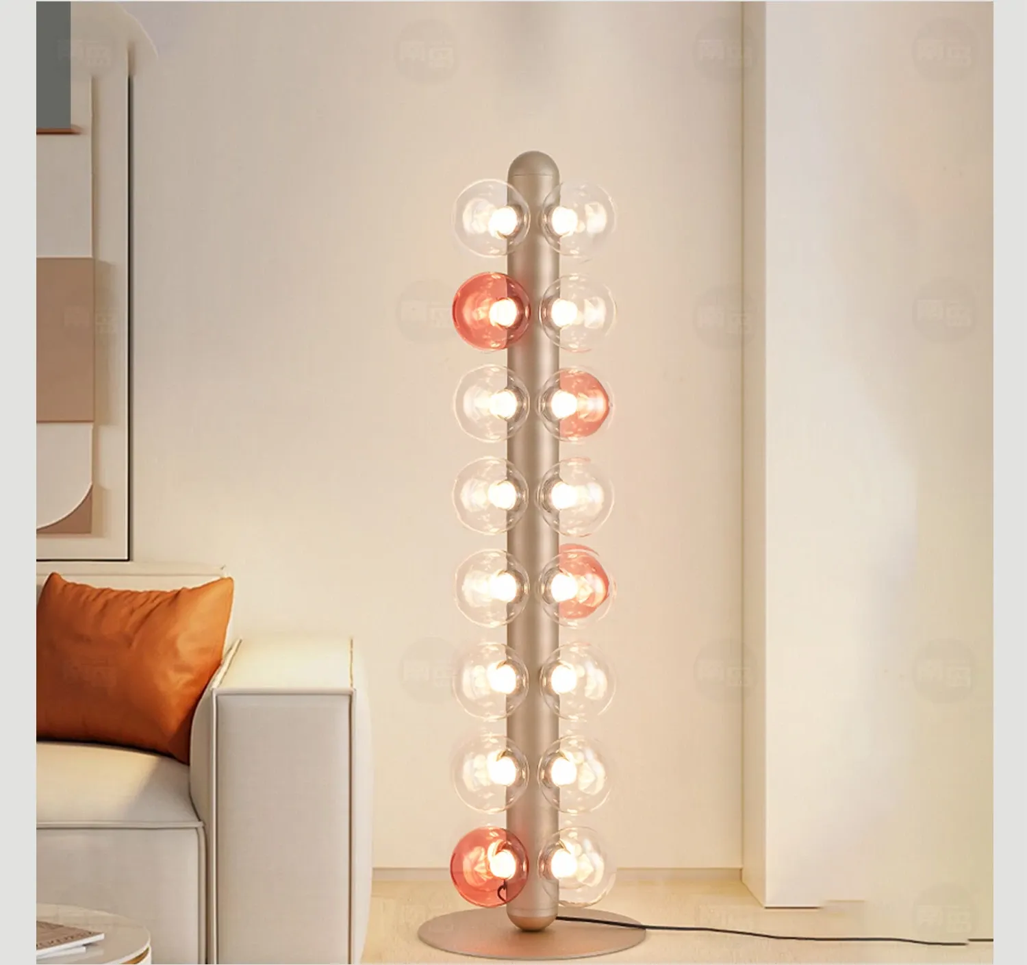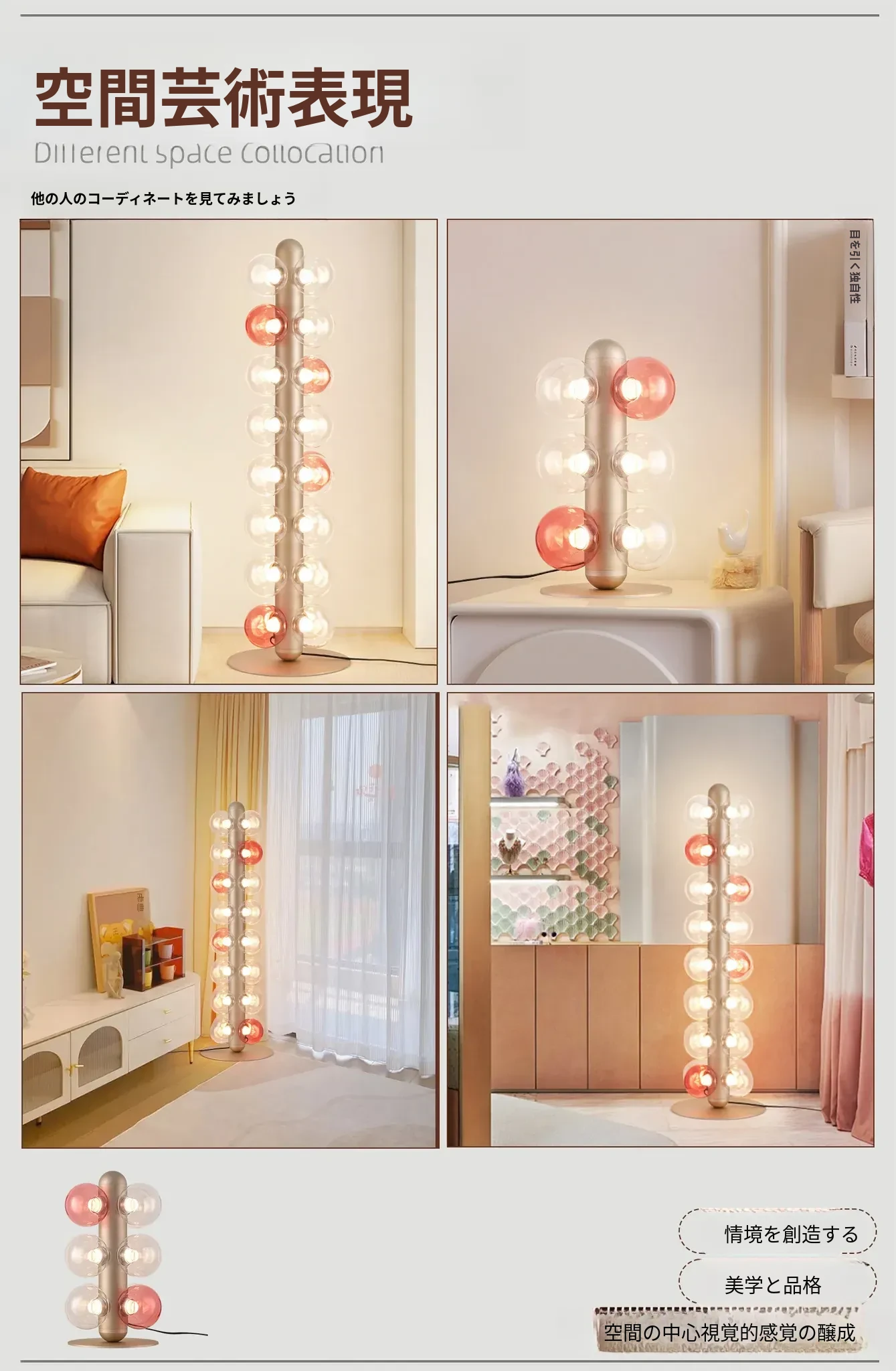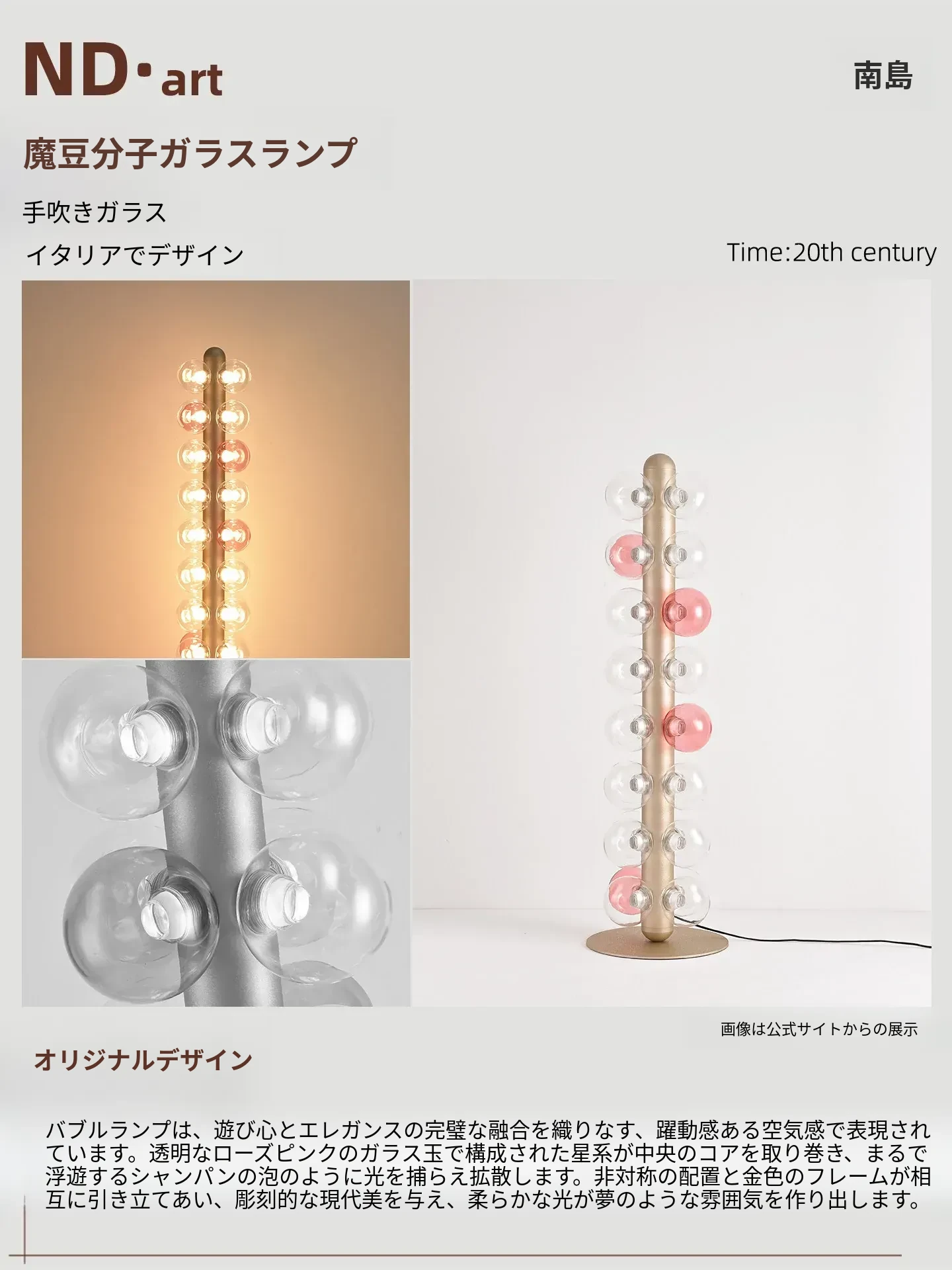モダンバブルボールフロアランプ|ラグジュアリーなデザインでリビングや書斎にぴったり!おしゃれな中古ソファにもマッチする、洗練された雰囲気を演出する照明です。