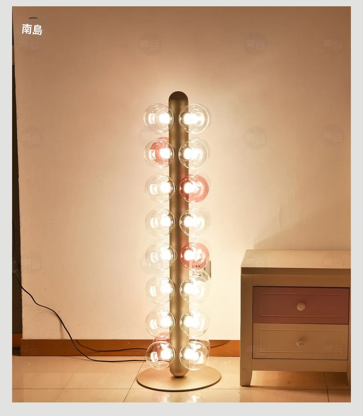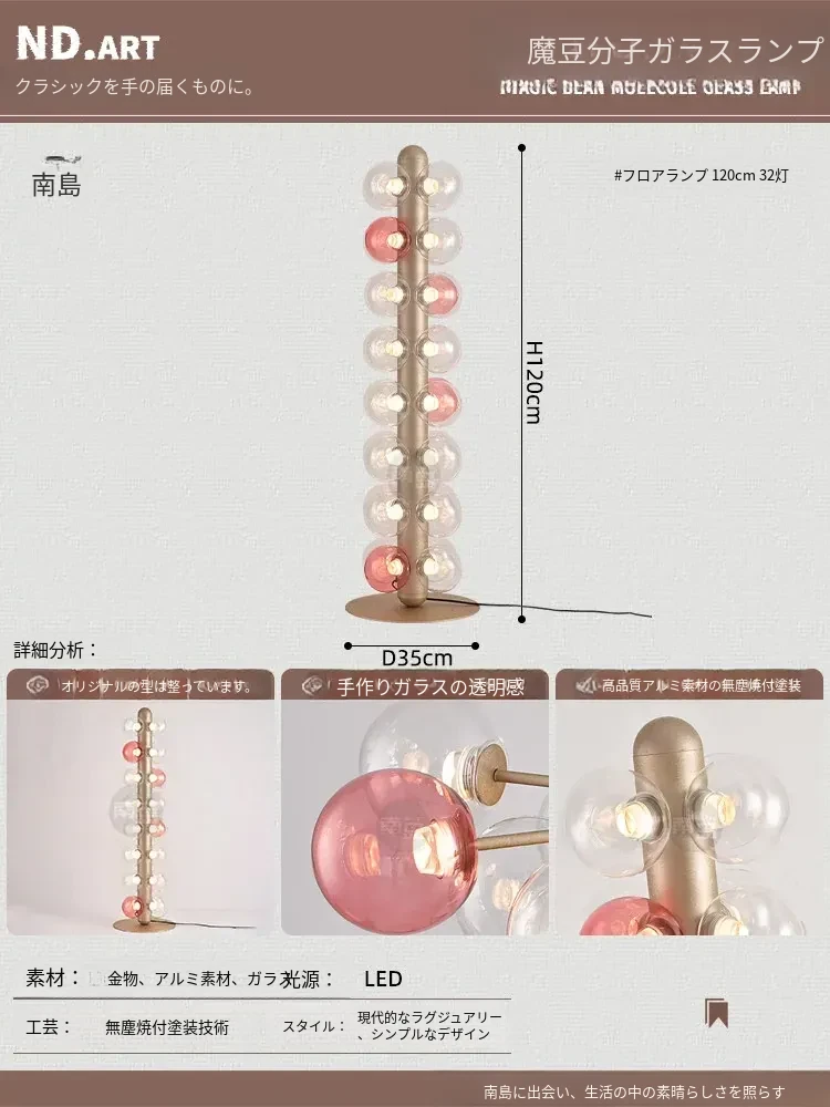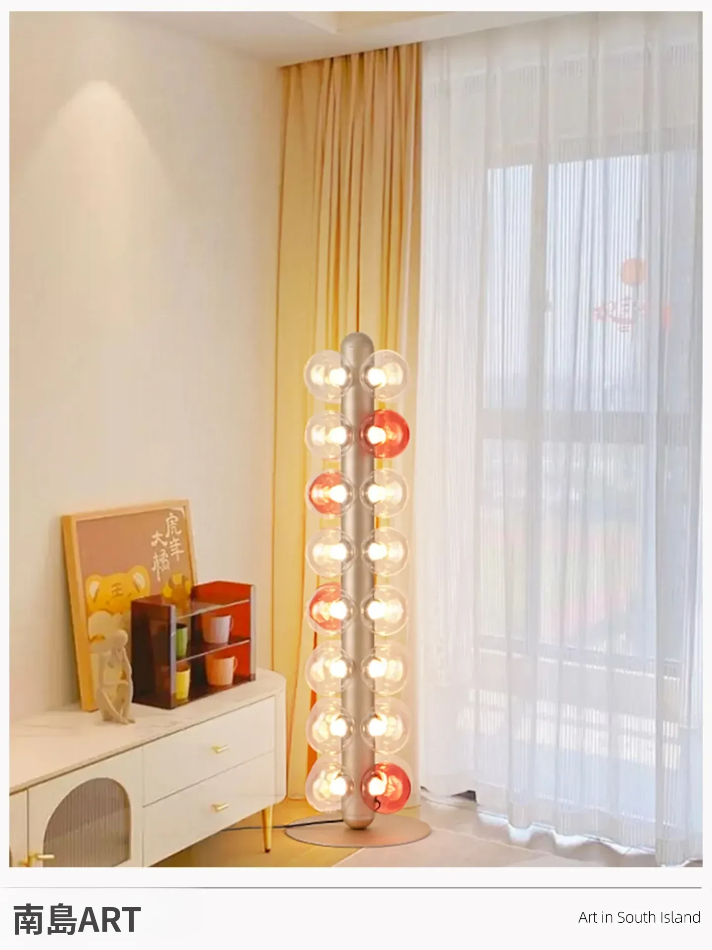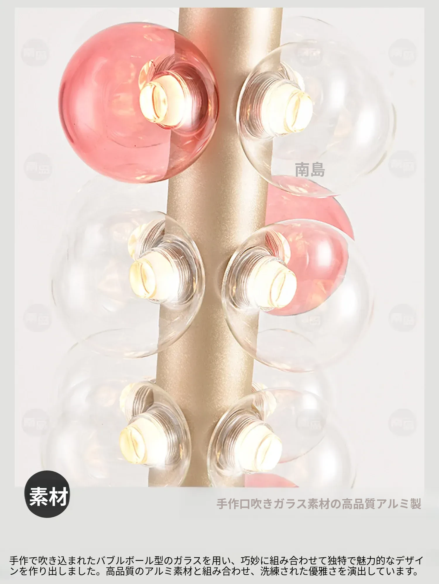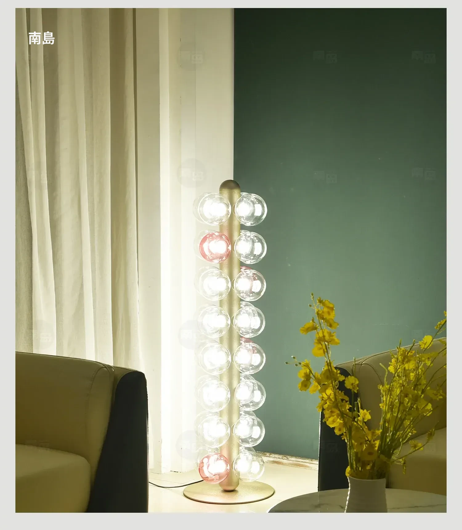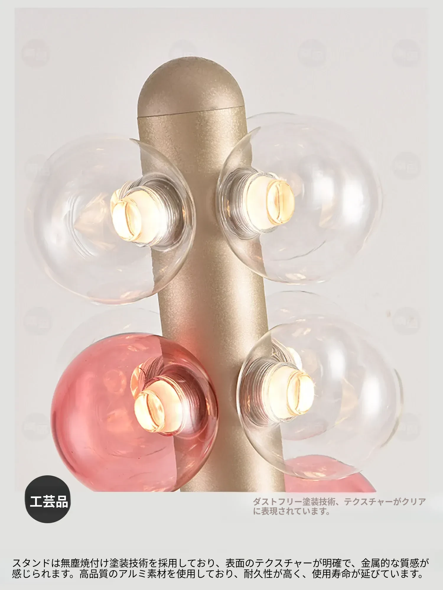 モダンバブルボールフロアランプ|ラグジュアリーなデザインでリビングや書斎にぴったり!おしゃれな中古ソファにもマッチする、洗練された雰囲気を演出する照明です。