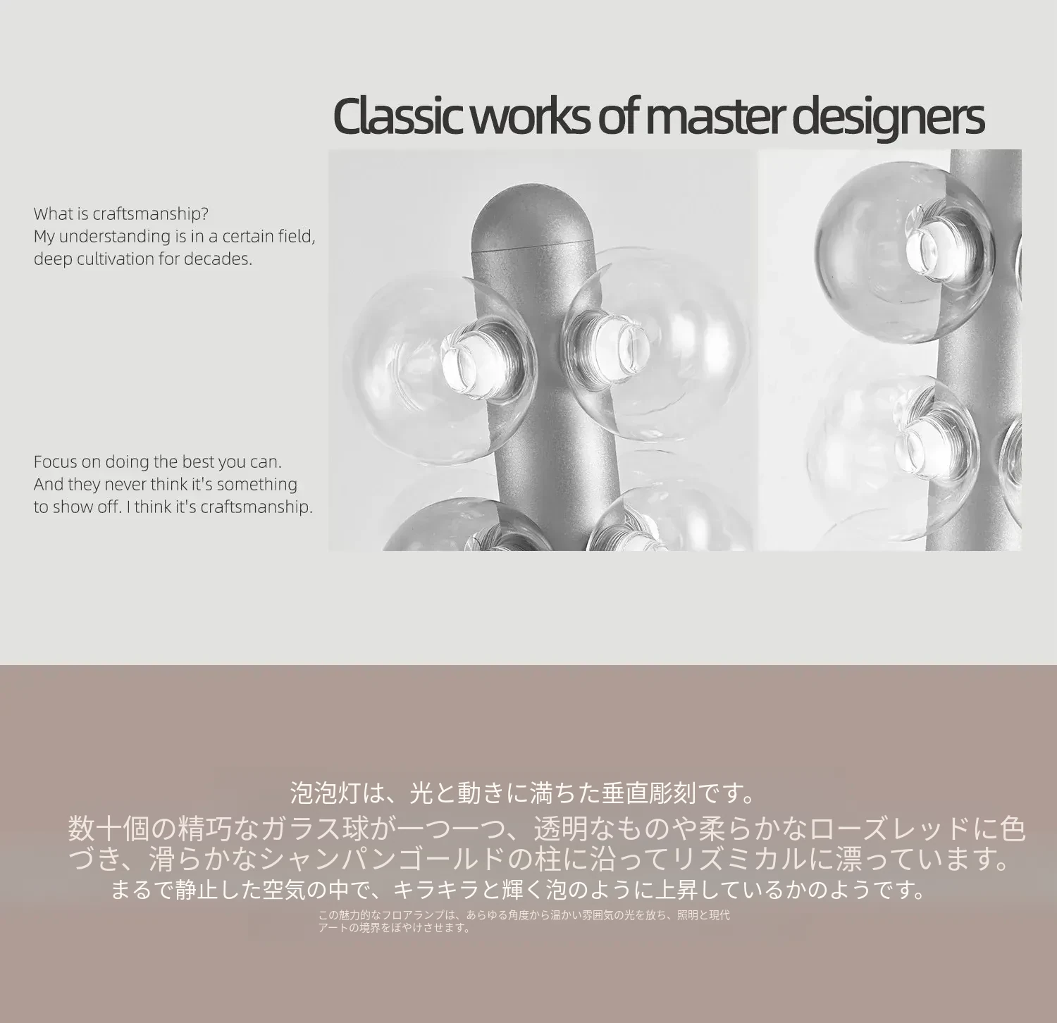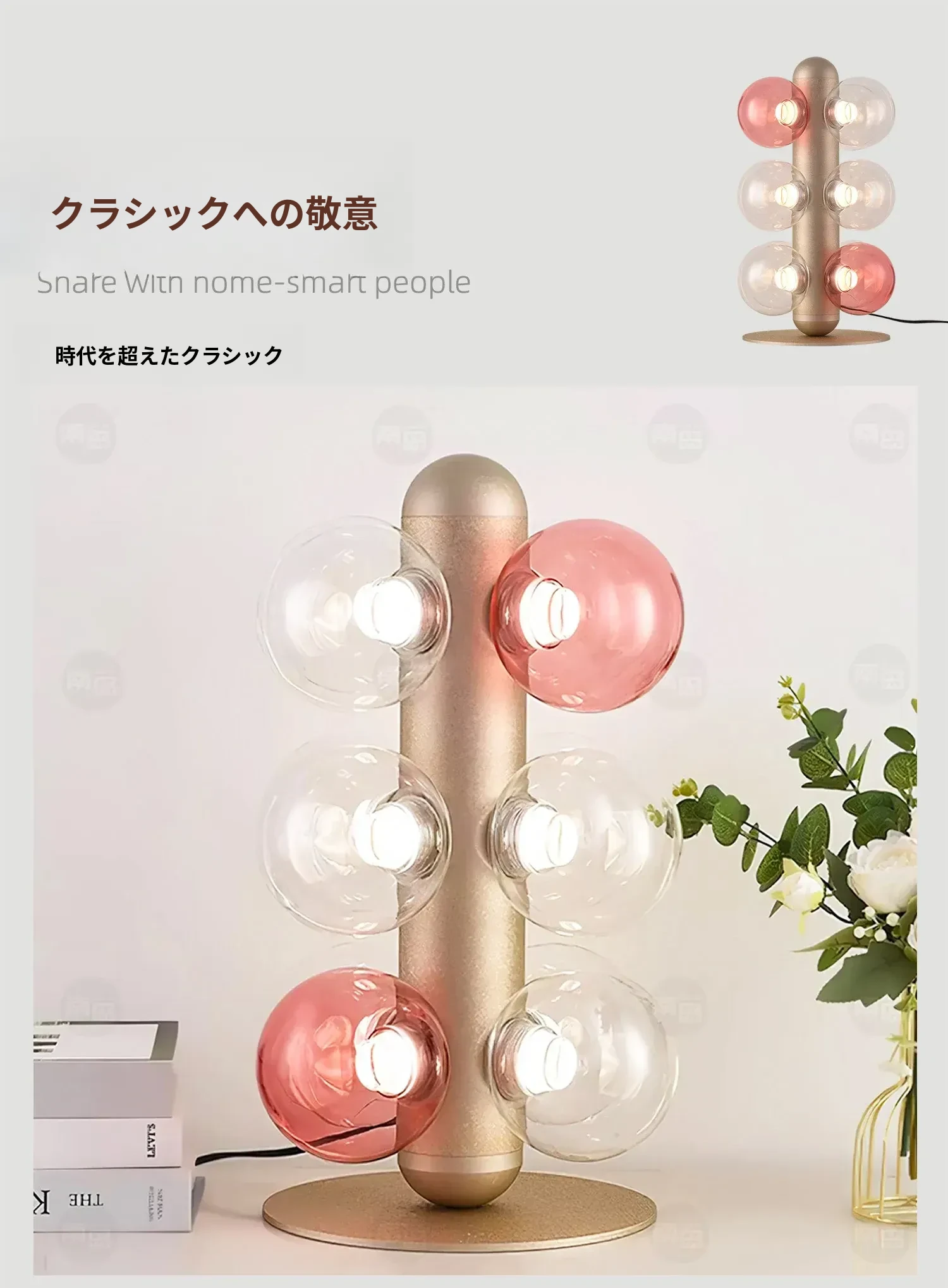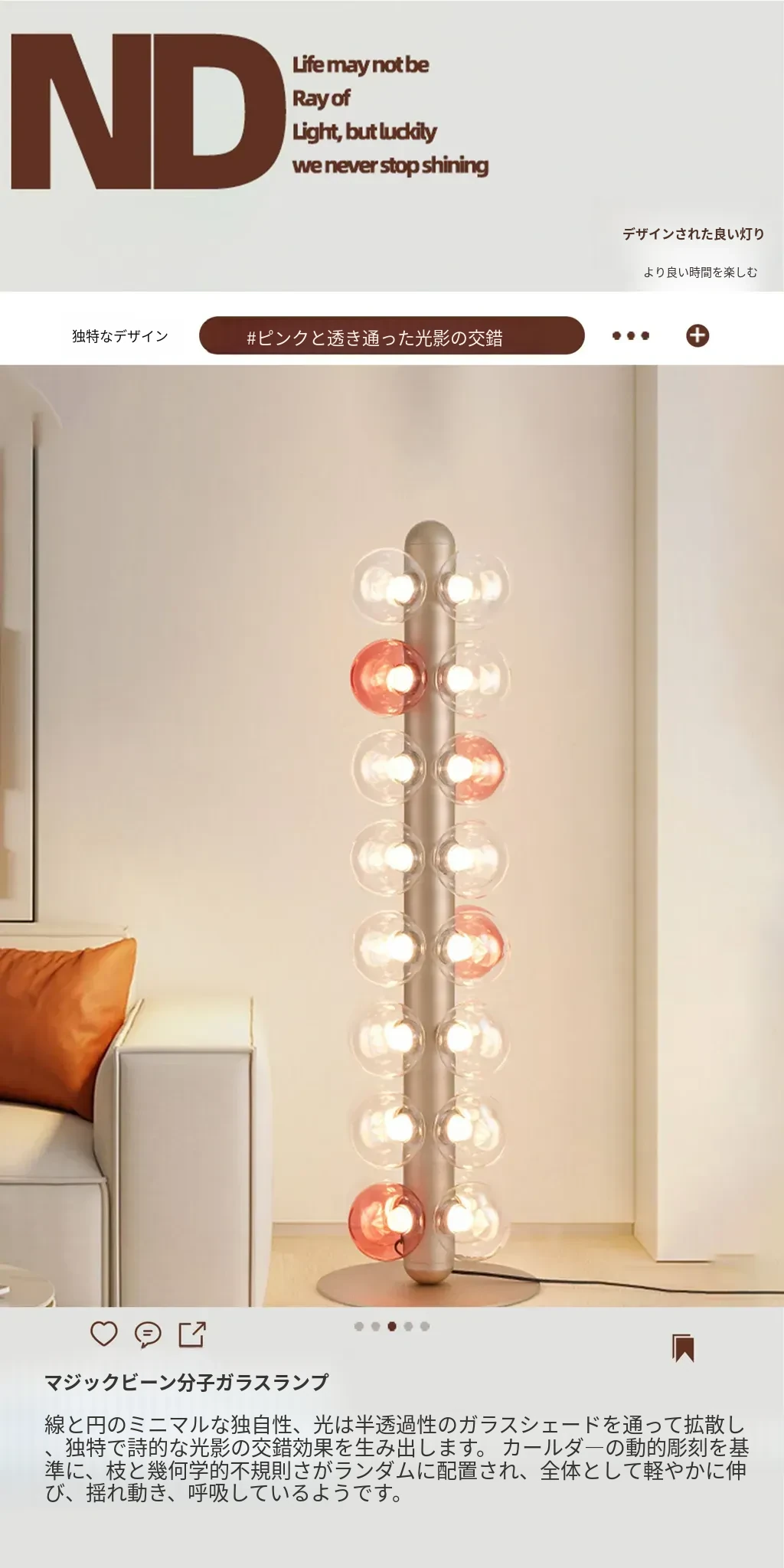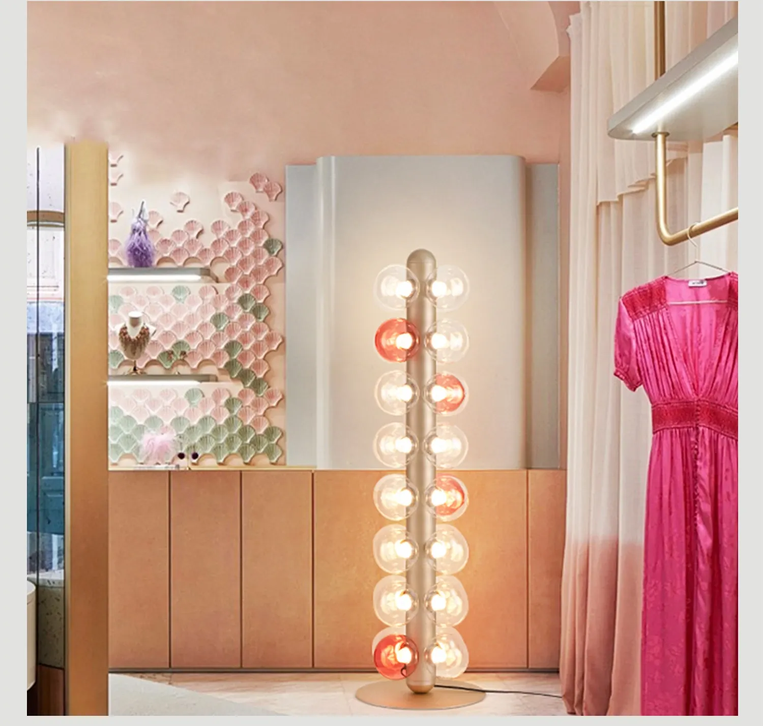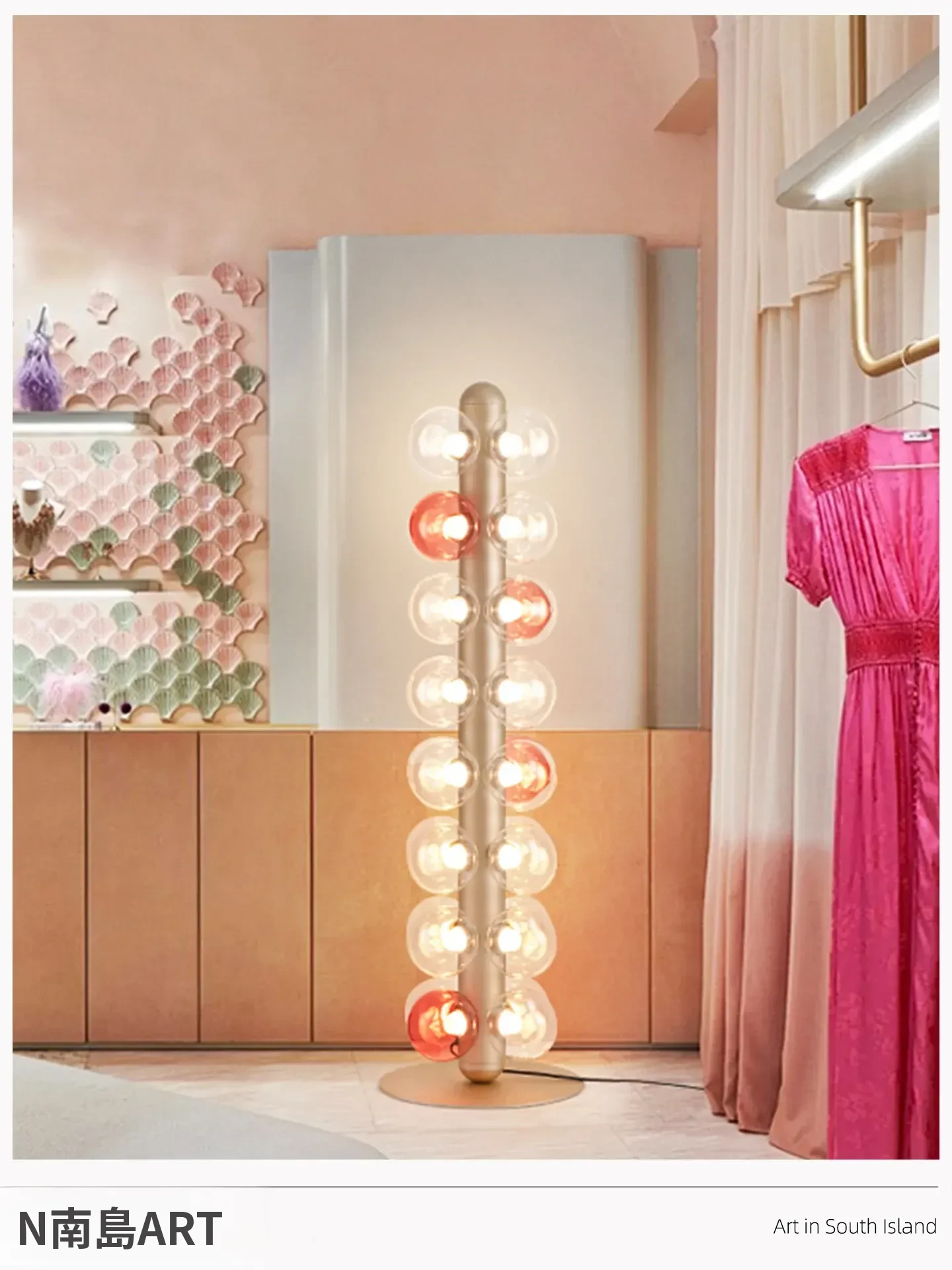 モダンバブルボールフロアランプ|ラグジュアリーなデザインでリビングや書斎にぴったり!おしゃれな中古ソファにもマッチする、洗練された雰囲気を演出する照明です。
