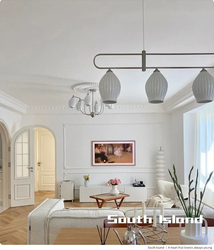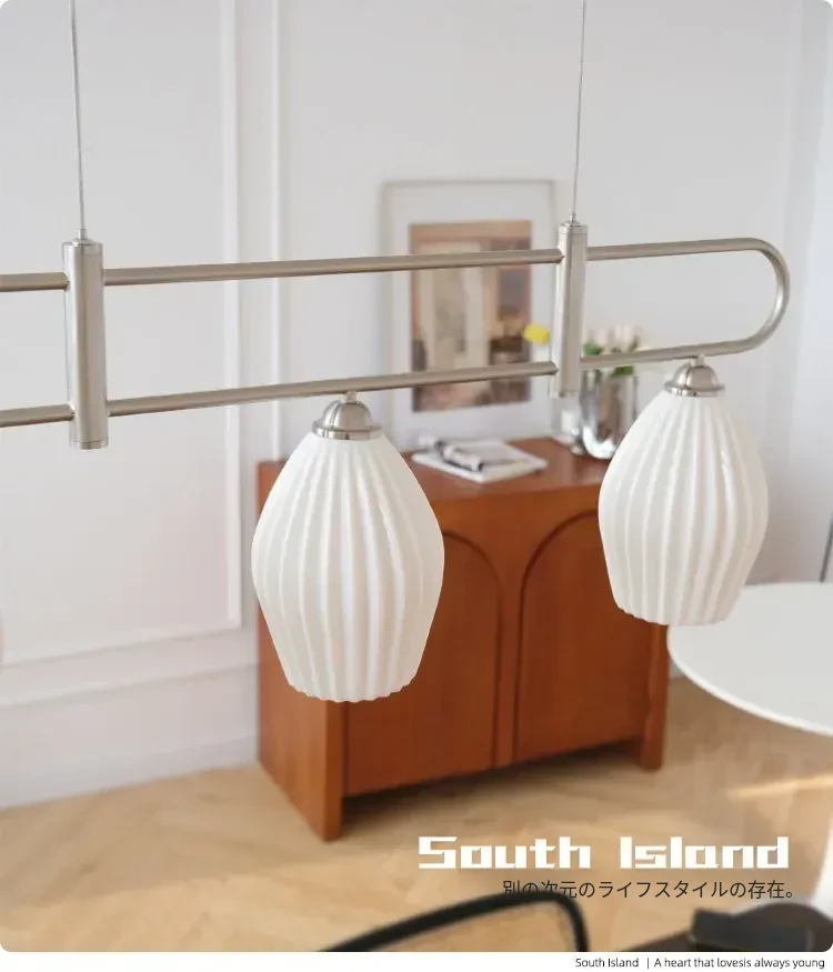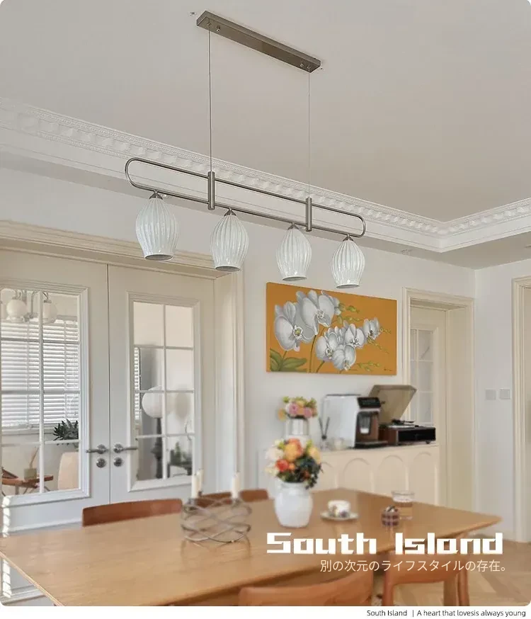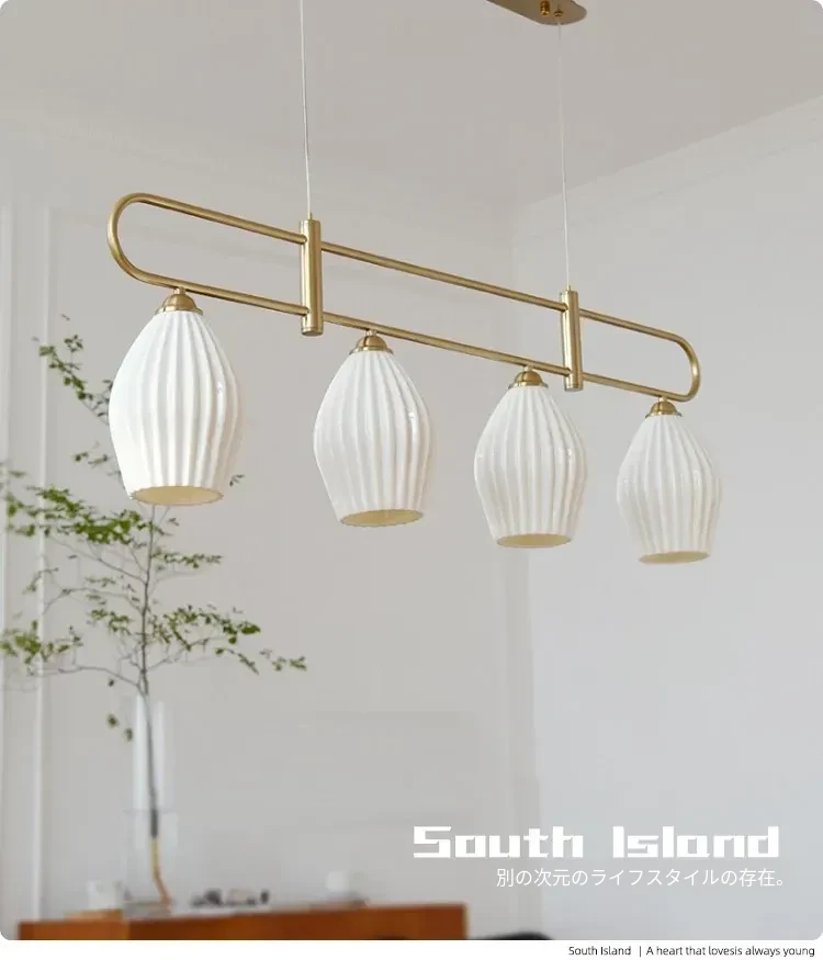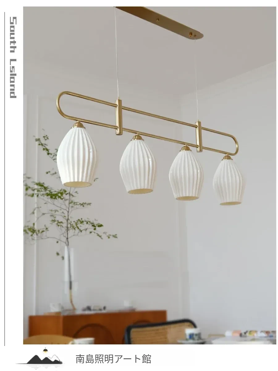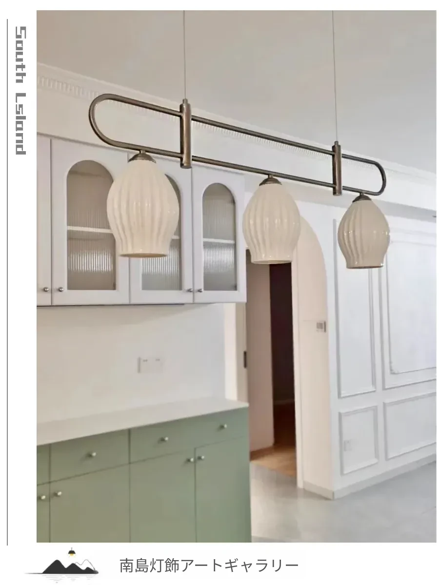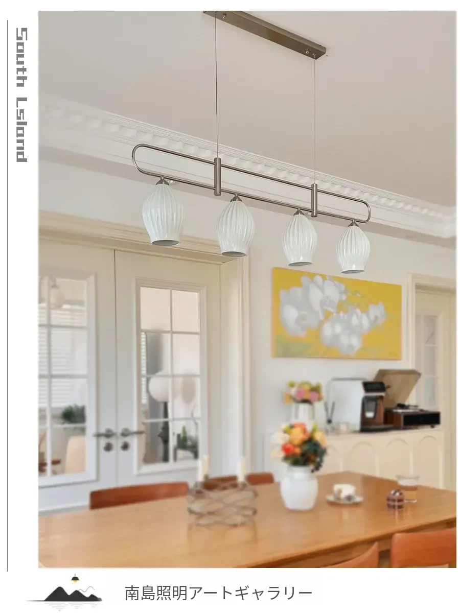 フレンチヴィンテージレストラン風 骨董風セラミック長方形ペンダントライト モダンクリームカラー バウハウススタイル ダイニング&バーアイランド用照明器具