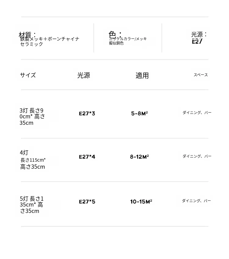 【5灯横型アンティークブロンズ色】長さ134*高さ33cm デフォルト暖色光