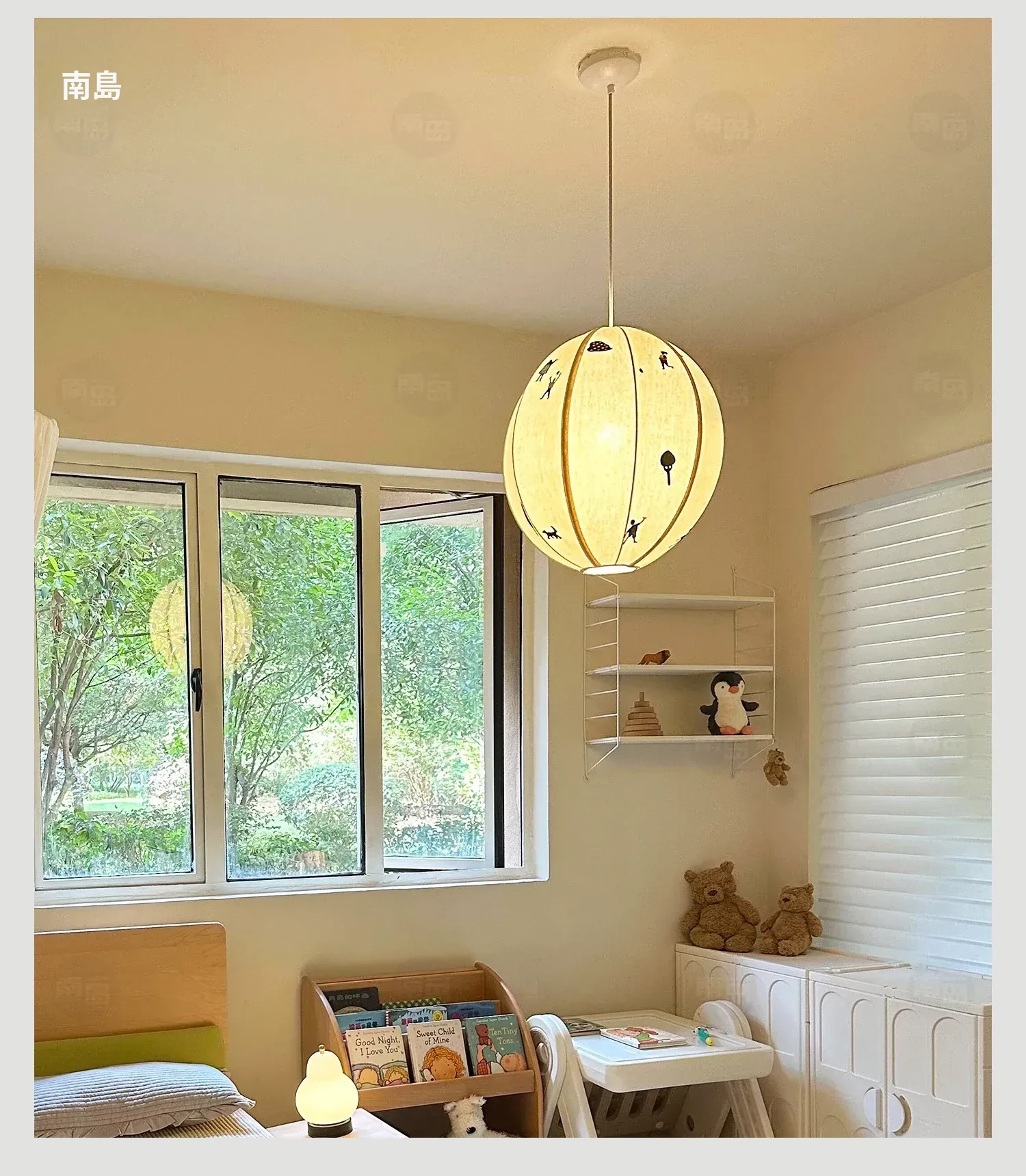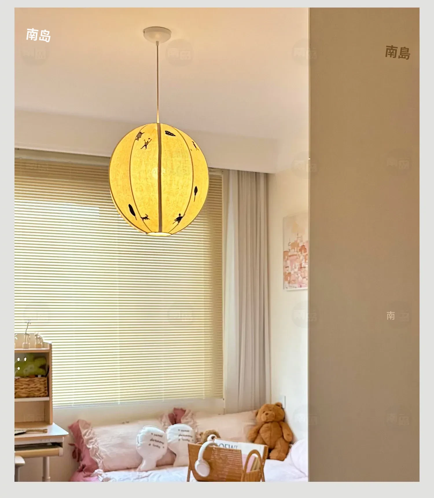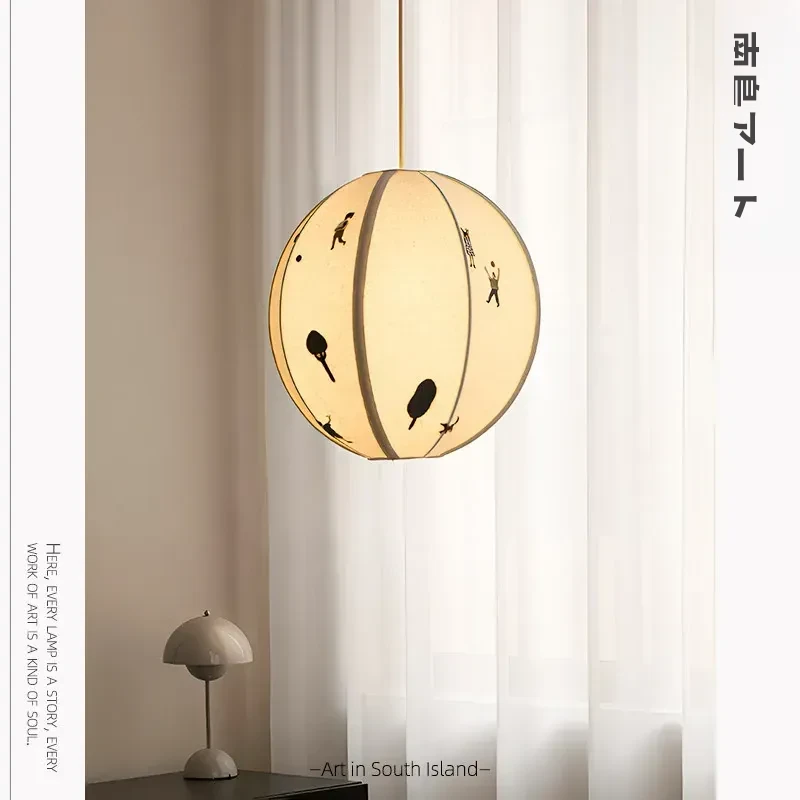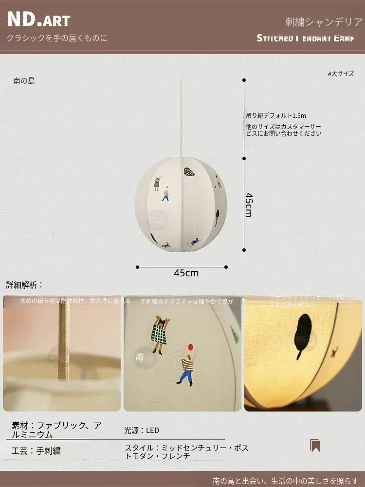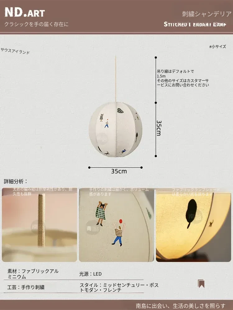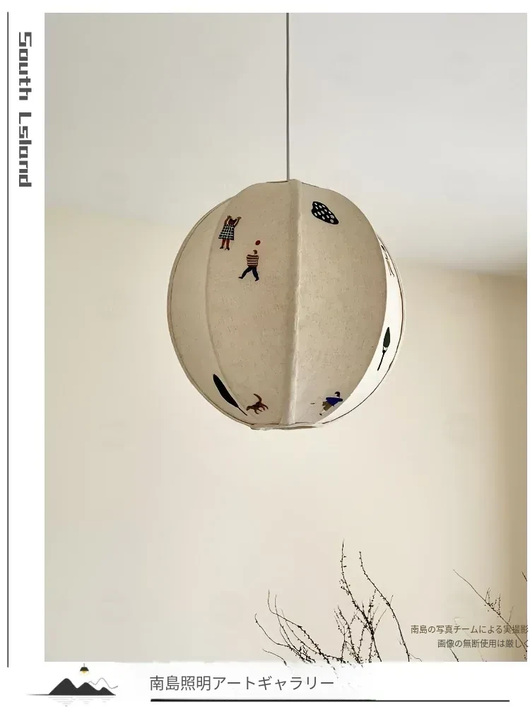 北欧スタイルのPARK子供公園手作り立体刺繍吊り灯 - 中古の和風アニメボール型寝室ライトで、子供部屋を温かく彩る!