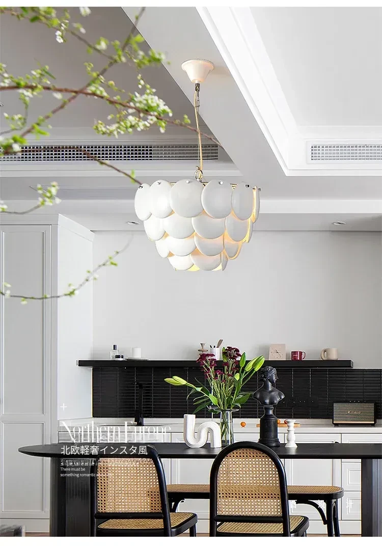 英国オリジナルBTCフレンチスタイルの骨 china シェルシャンデリア - 北欧風クリーム色のダイニング、寝室、書斎にぴったりのエレガントな照明装飾!