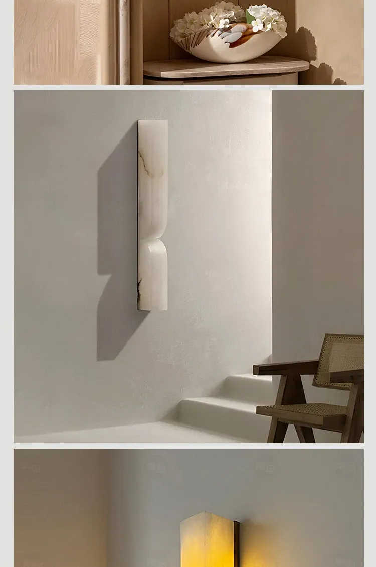 スペイン製の大理石壁灯 - リビングルームや背景壁、階段、廊下に最適な中古のシンプルでモダンな装飾照明。スタイリッシュで高級感あふれるデザインで、空間を美しく演出します。