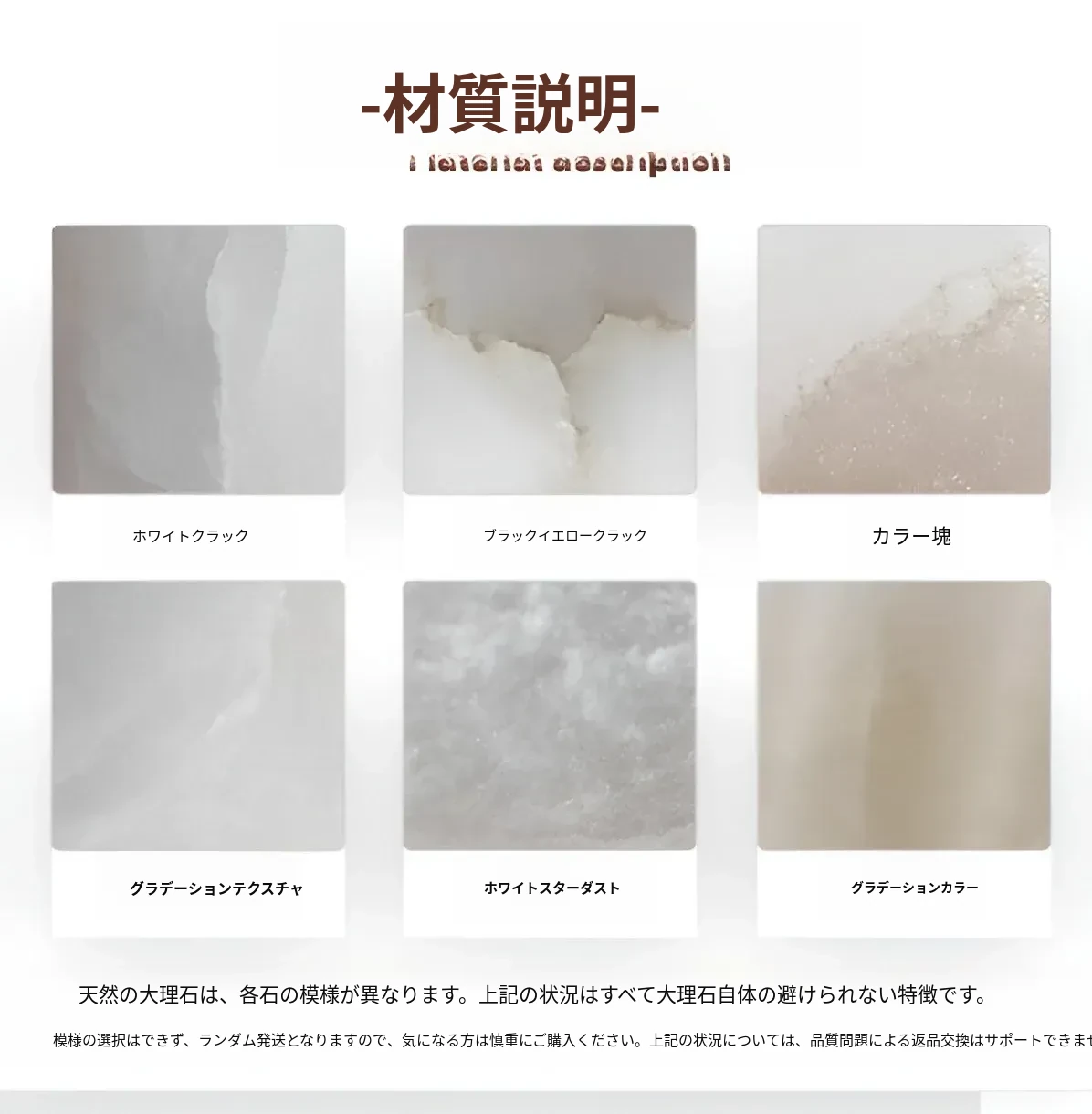 【輸入された大理石素材の説明】