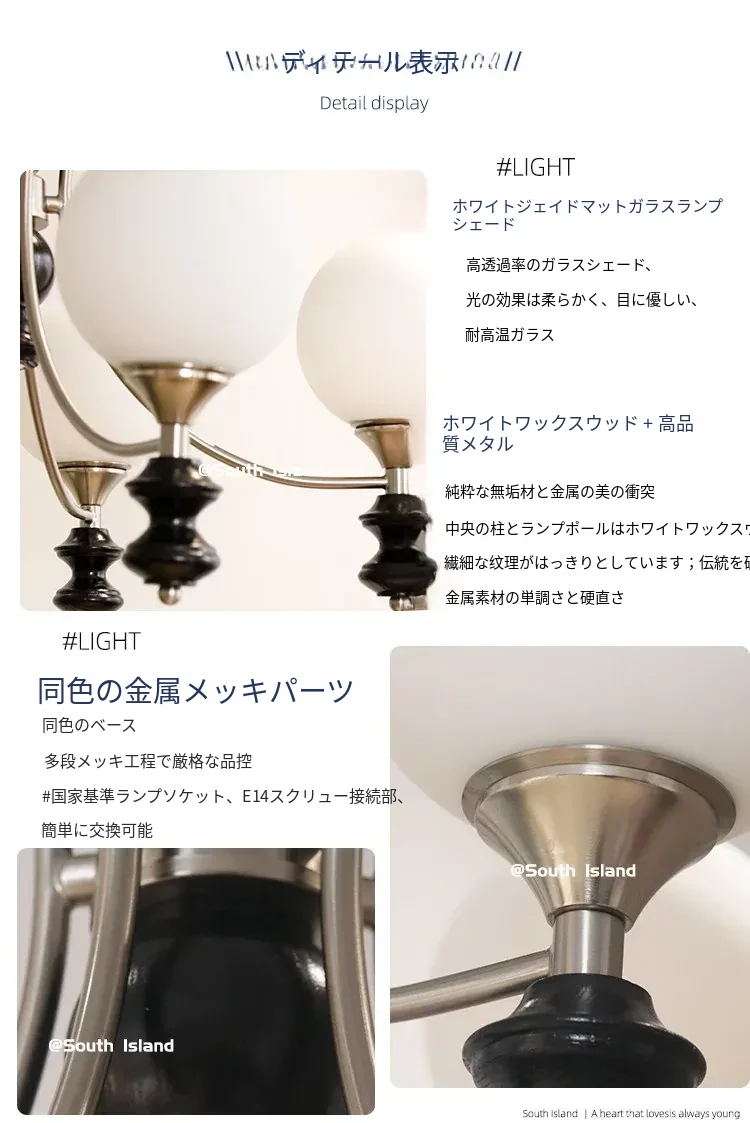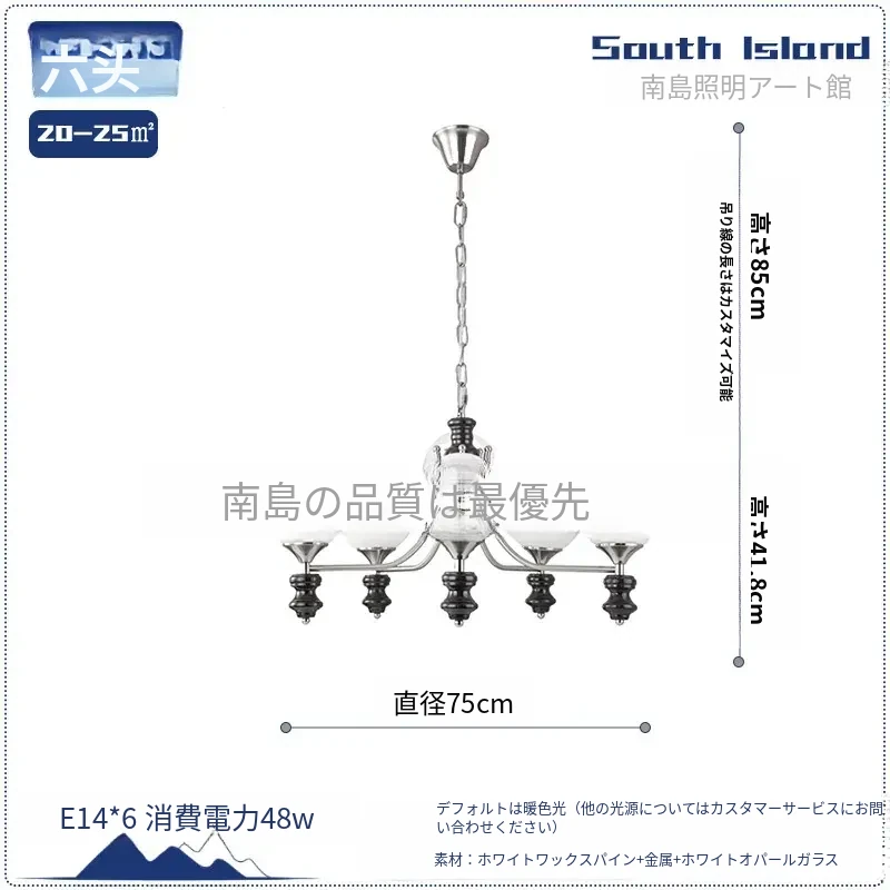 【マットブラック6灯】直径75cm ホワイトアッシュ