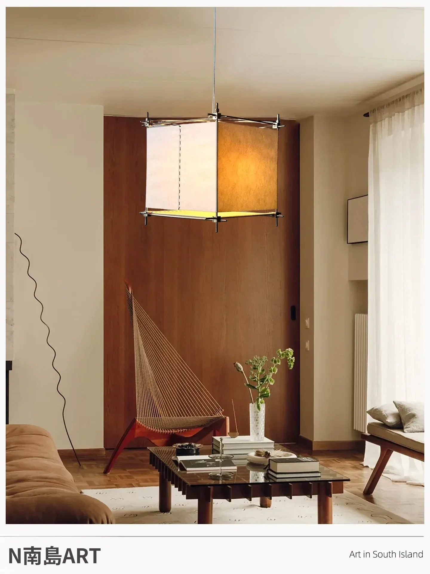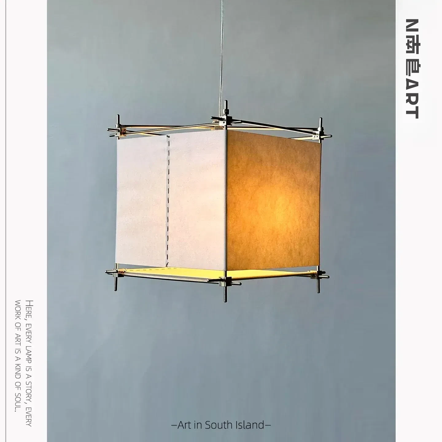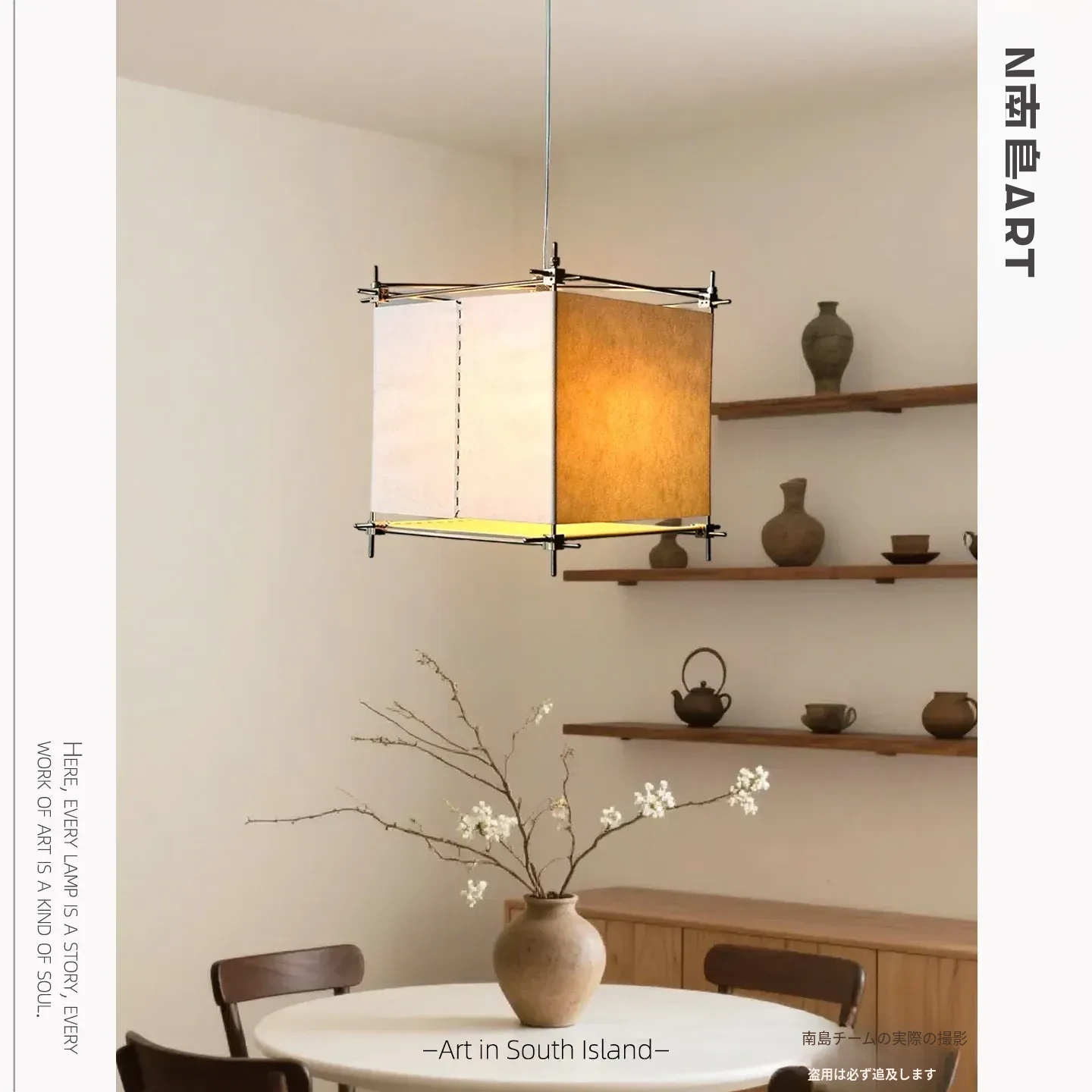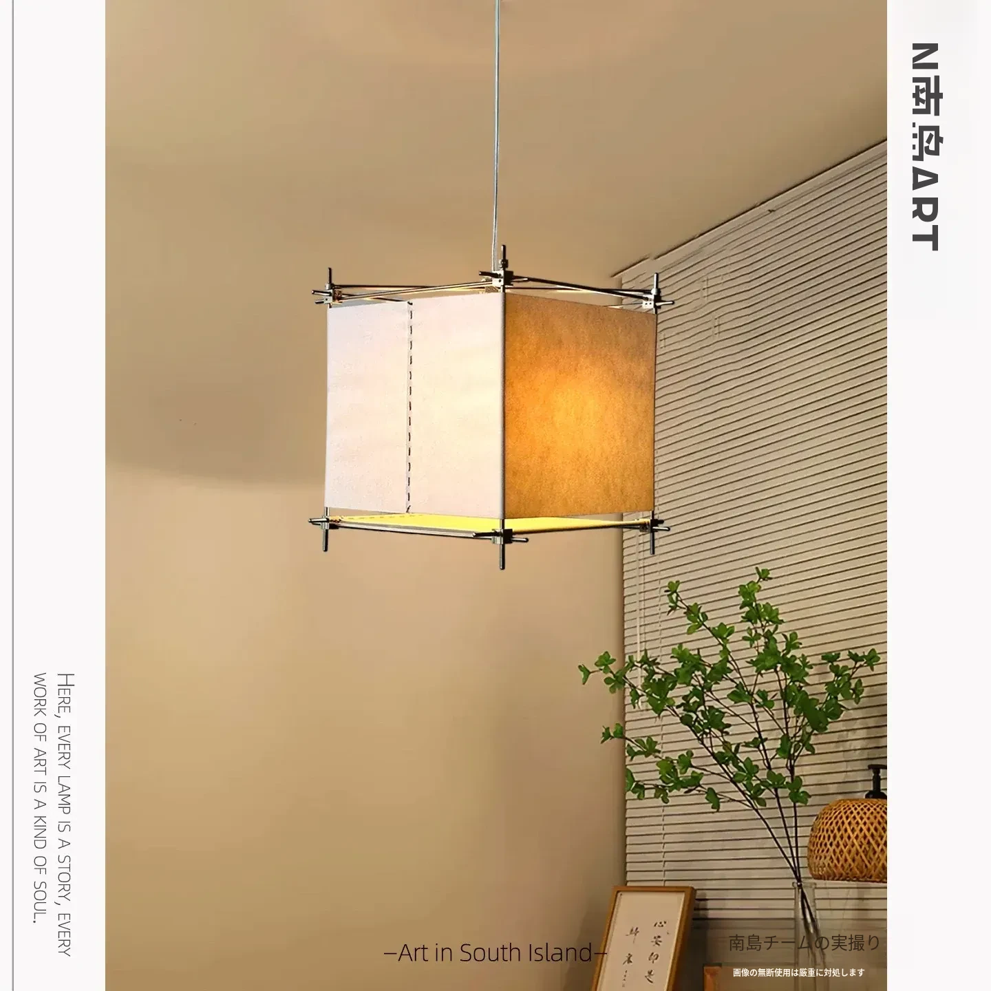 中古のアンドンステンレス製ウォッシャブルペーパーペンダントライト - バウハウススタイルのモダンなダイニングバー用照明、寝室や書斎にも最適!