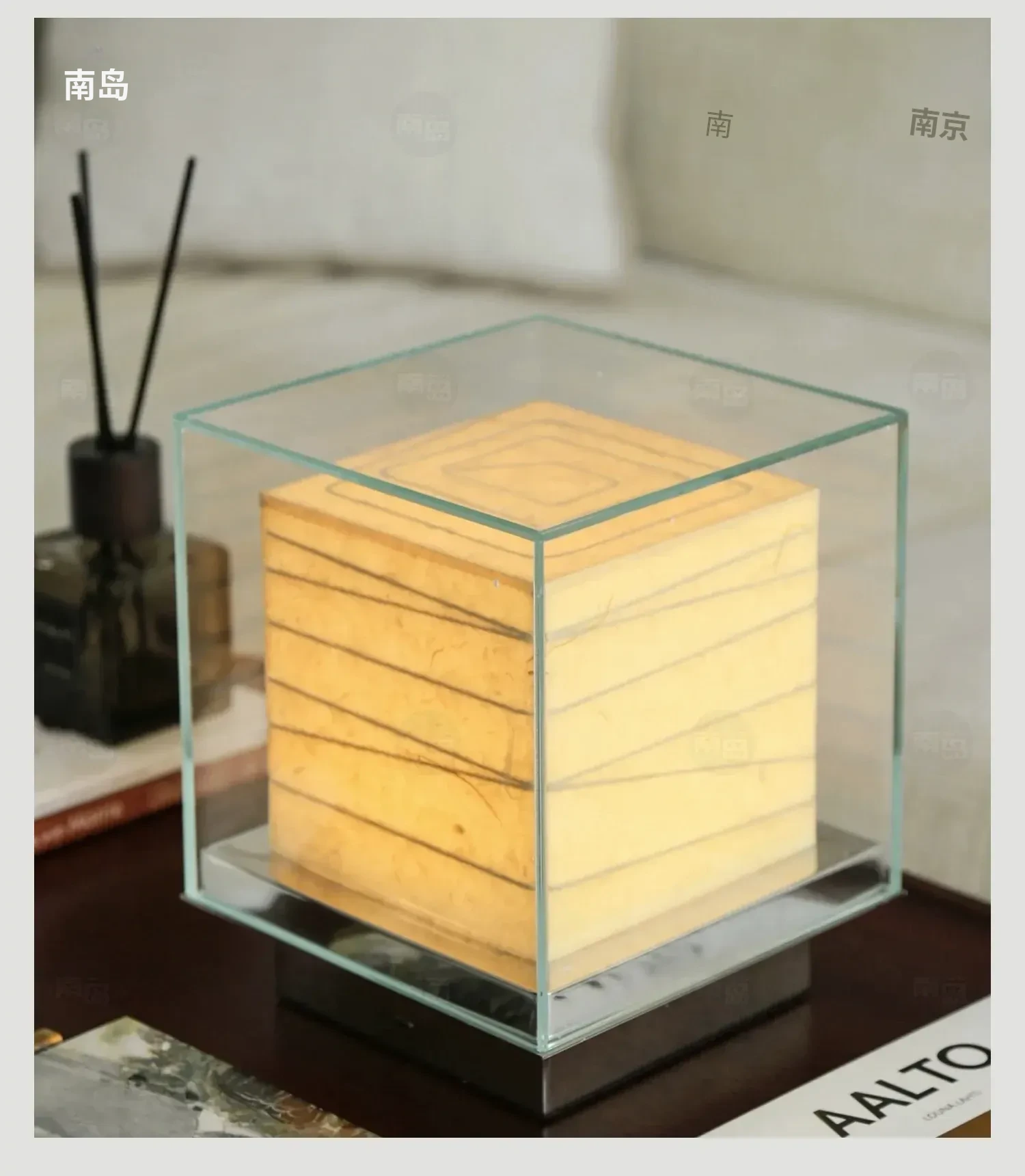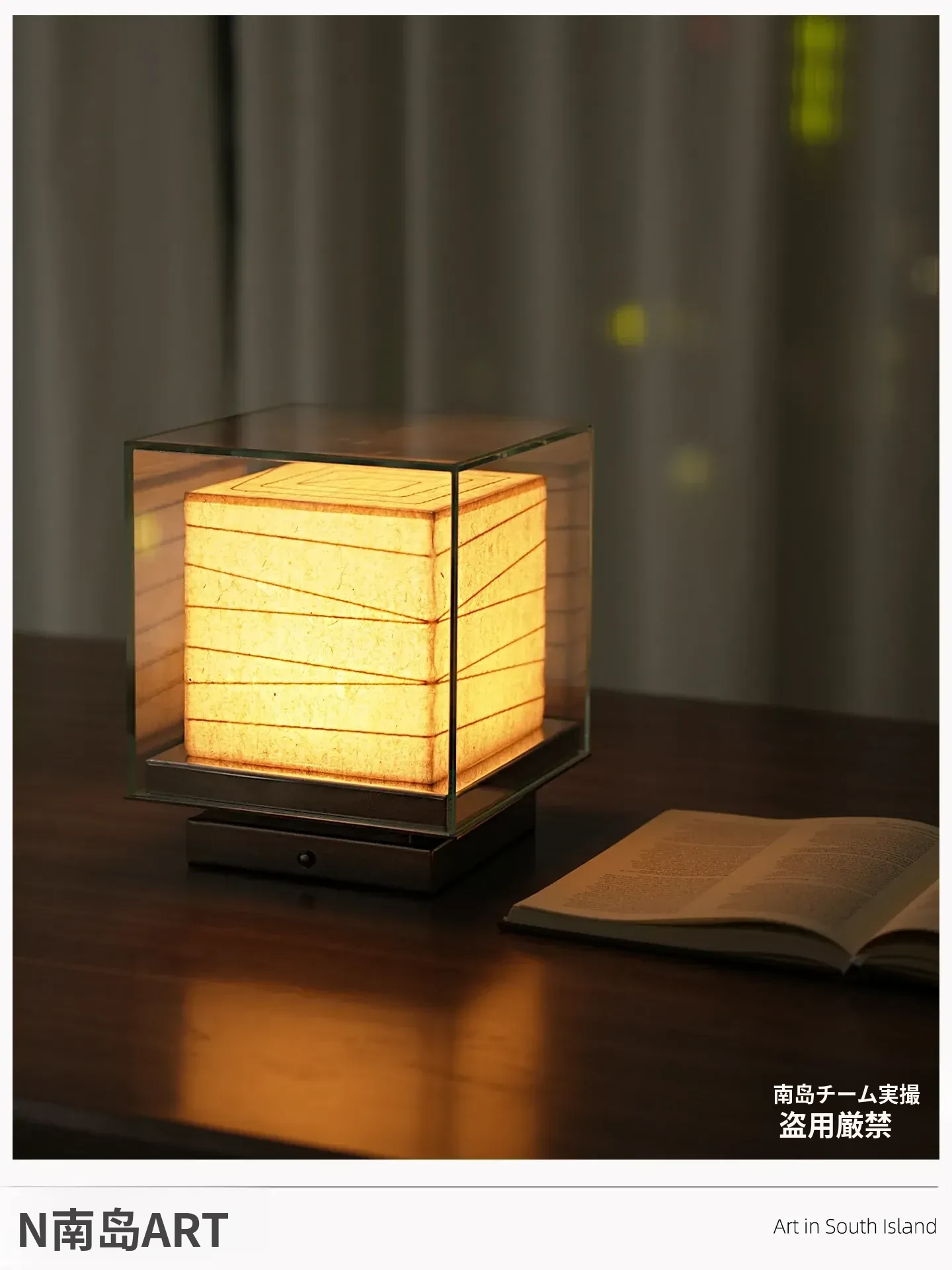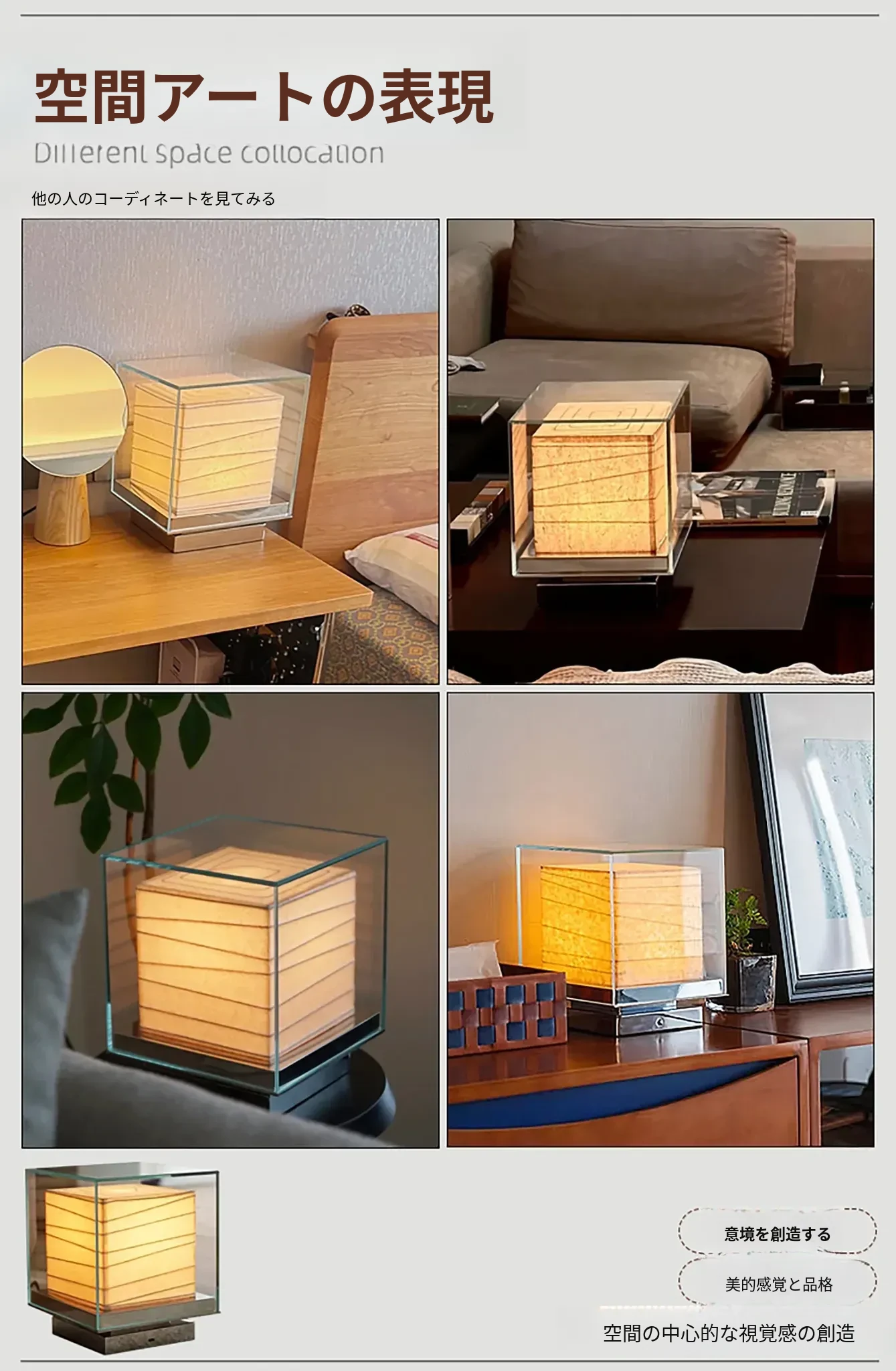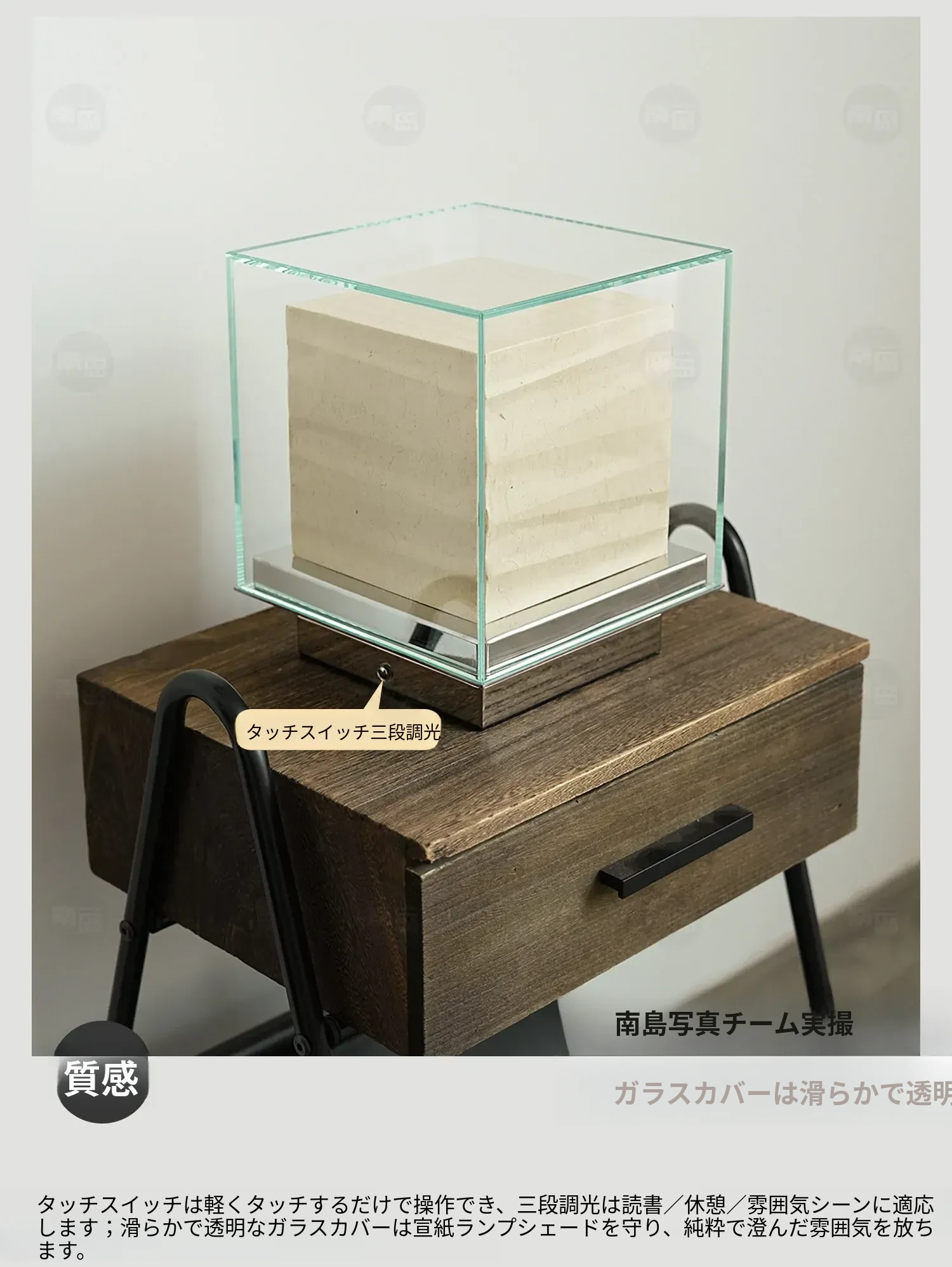 中古デザイナーANdAZの季裕棠スクエアガラステーブルランプ|日本式充電式・書斎・寝室・ベッドサイドにぴったりの雰囲気灯!おしゃれなインテリアで心地よい空間を演出!