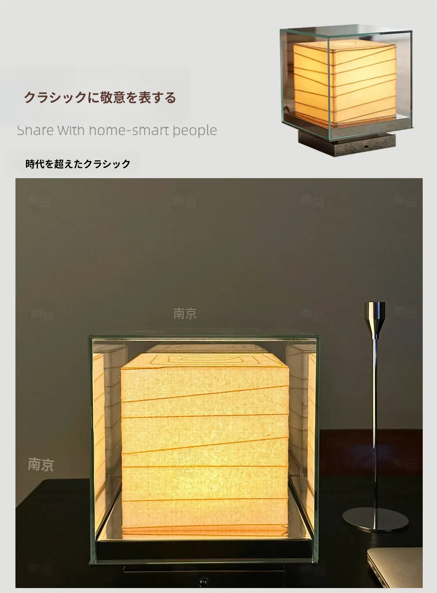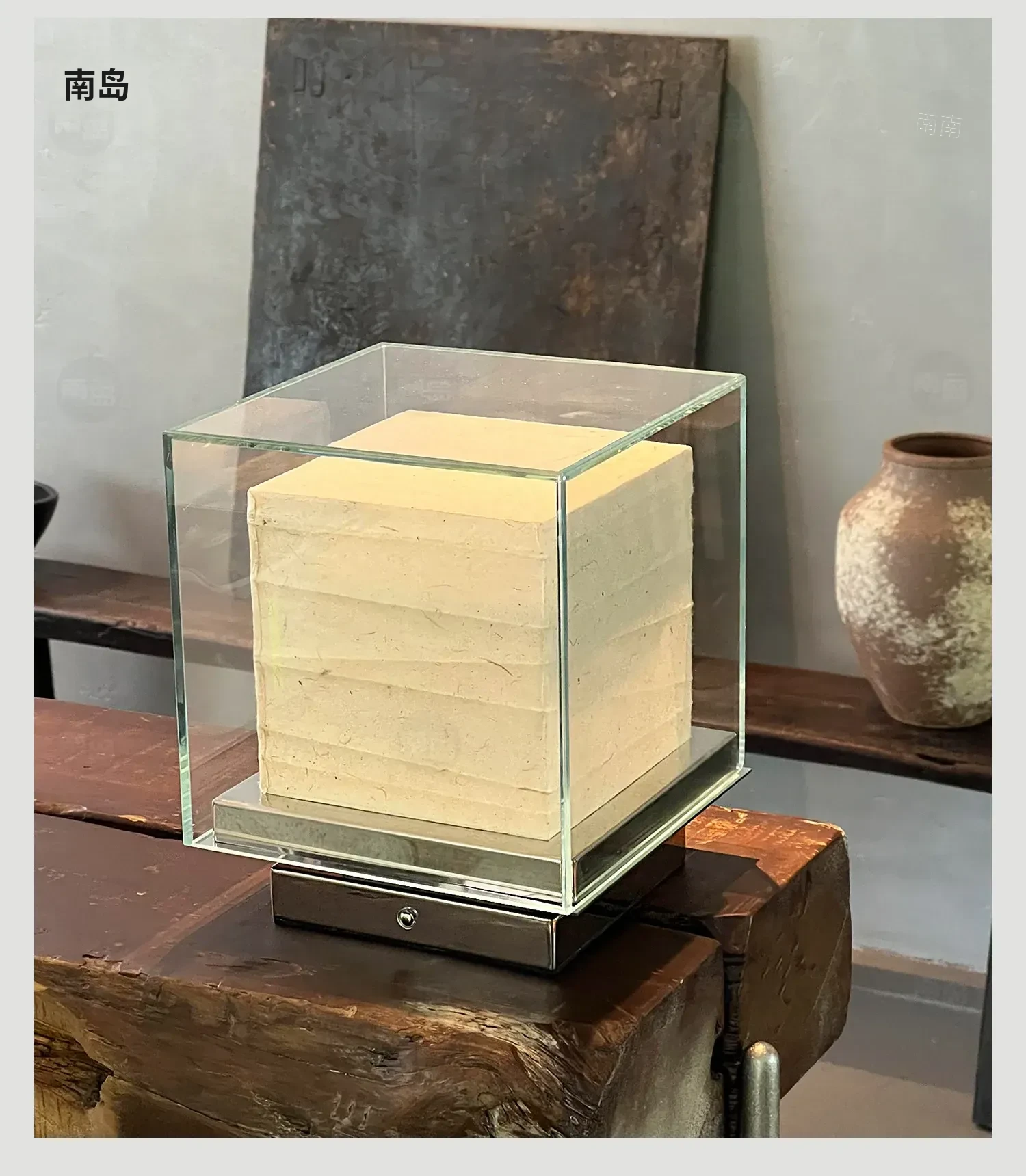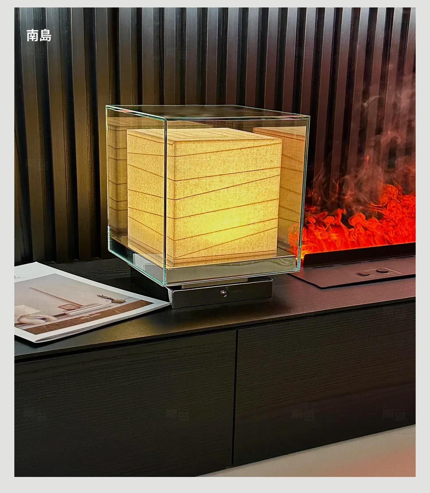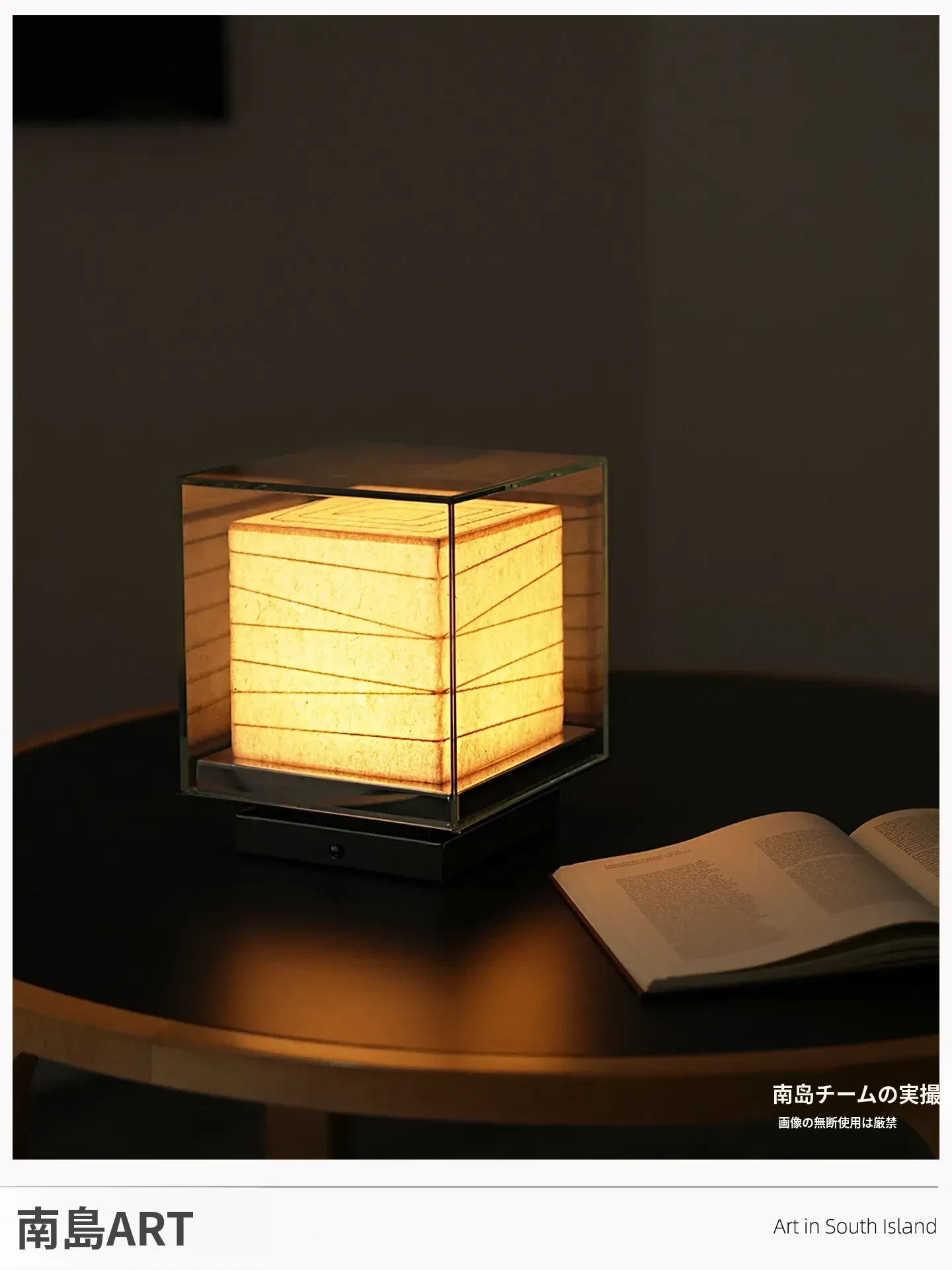 中古デザイナーANdAZの季裕棠スクエアガラステーブルランプ|日本式充電式・書斎・寝室・ベッドサイドにぴったりの雰囲気灯!おしゃれなインテリアで心地よい空間を演出!