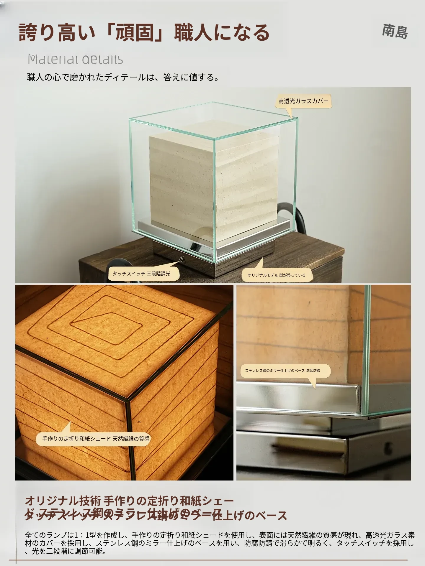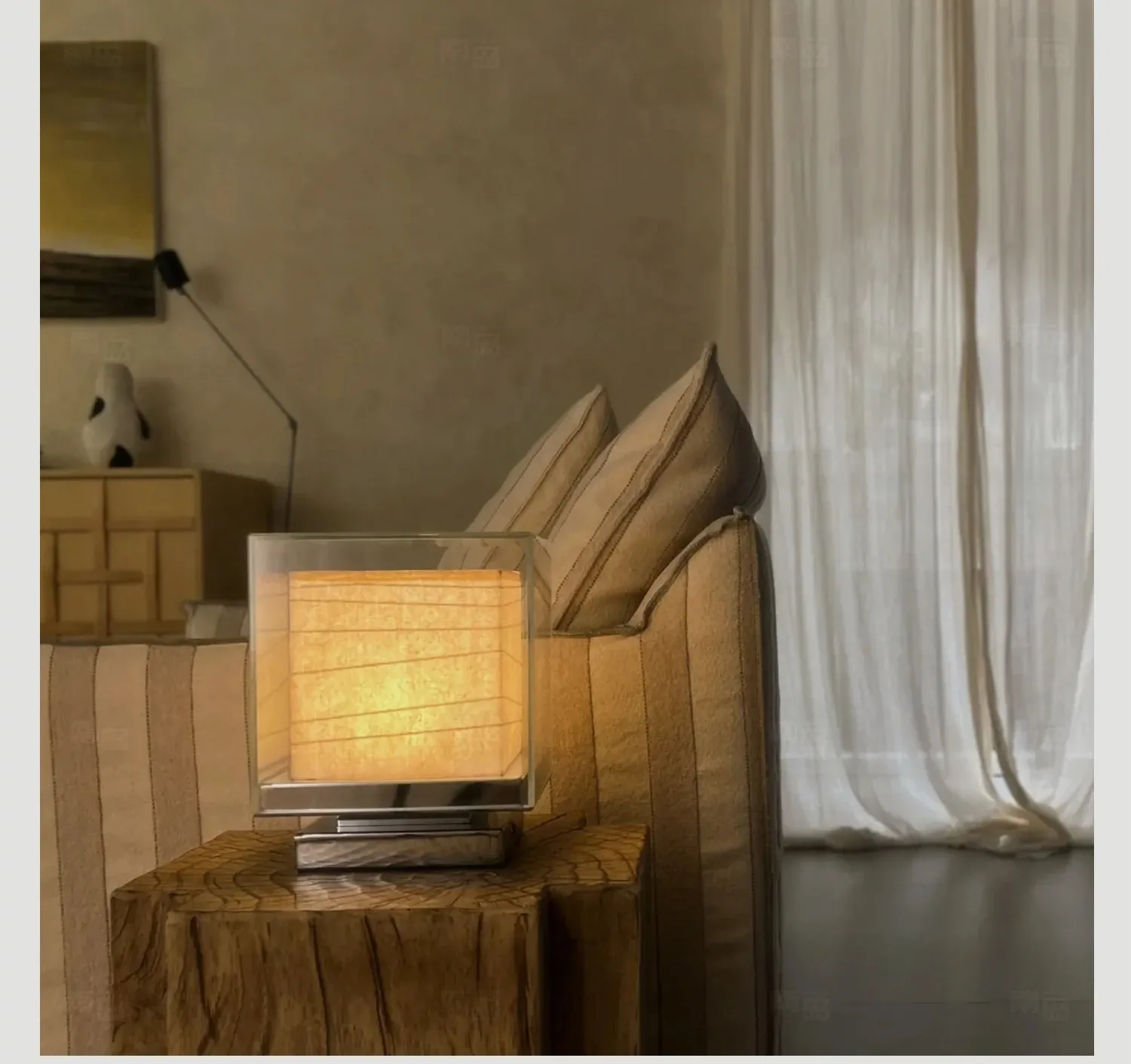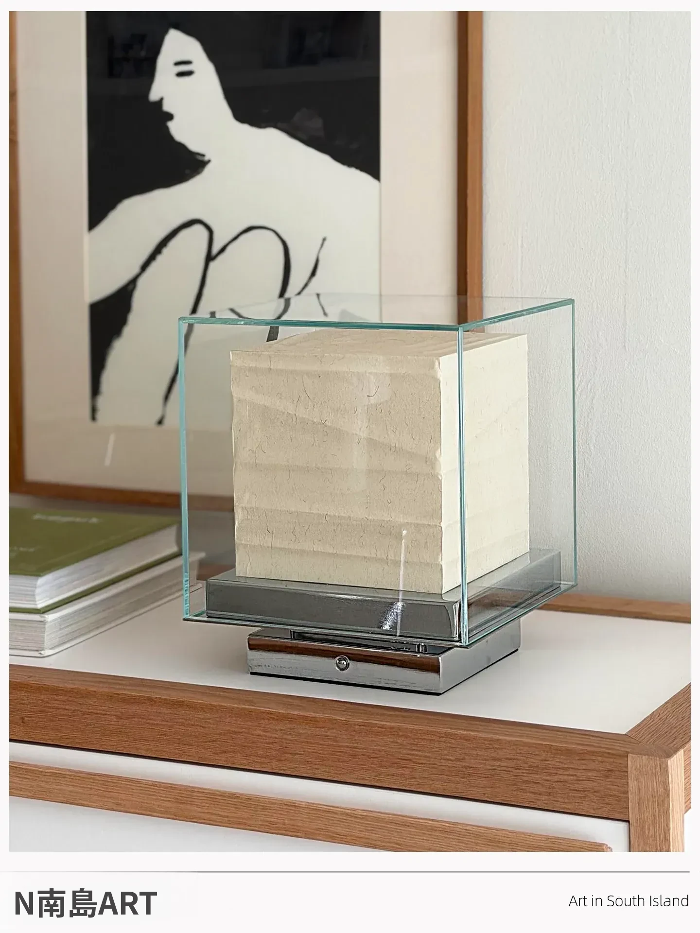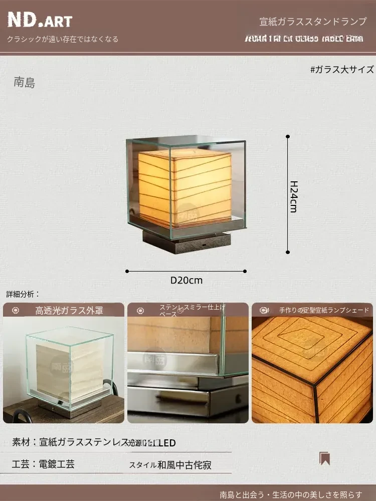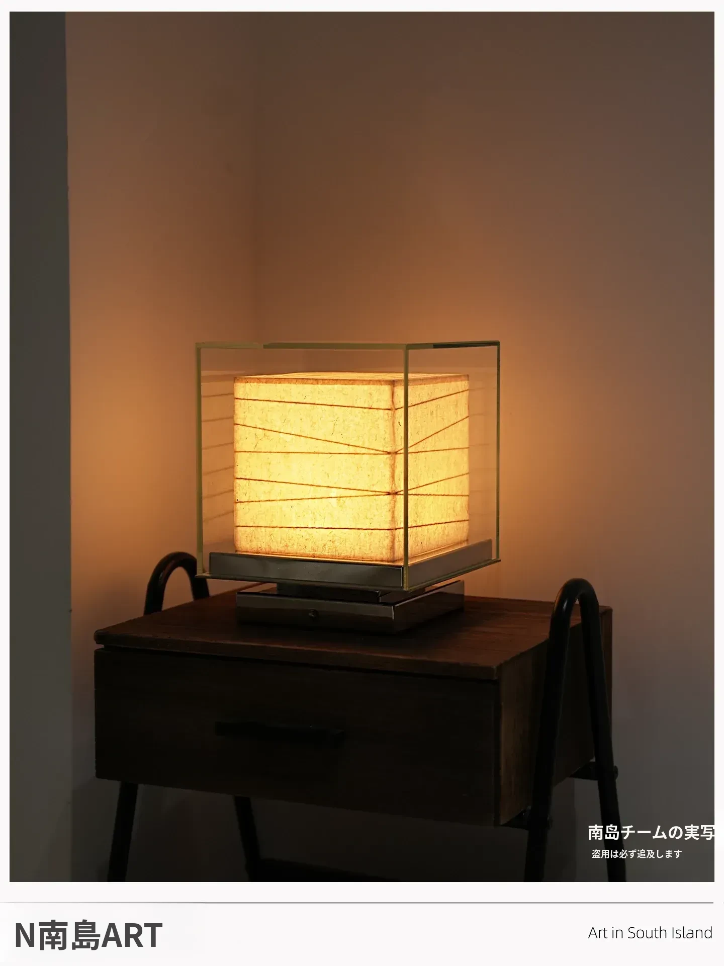 中古デザイナーANdAZの季裕棠スクエアガラステーブルランプ|日本式充電式・書斎・寝室・ベッドサイドにぴったりの雰囲気灯!おしゃれなインテリアで心地よい空間を演出!