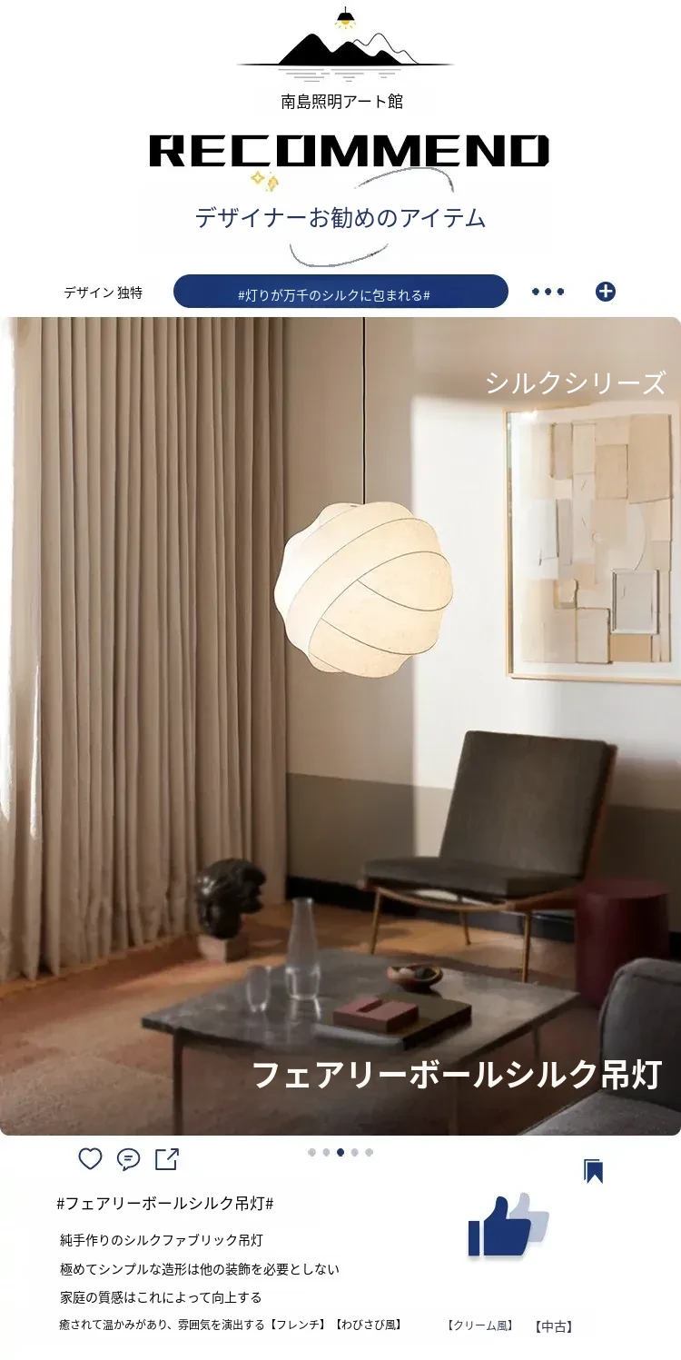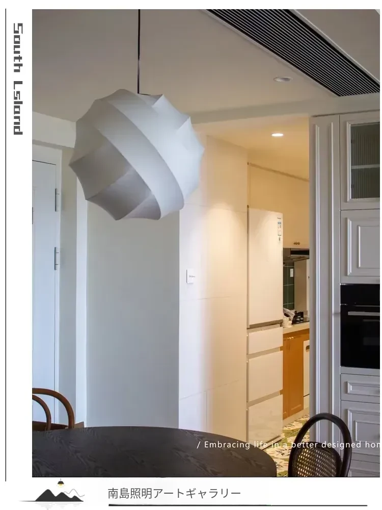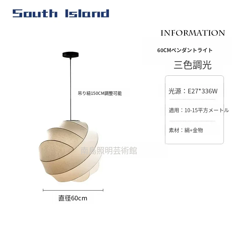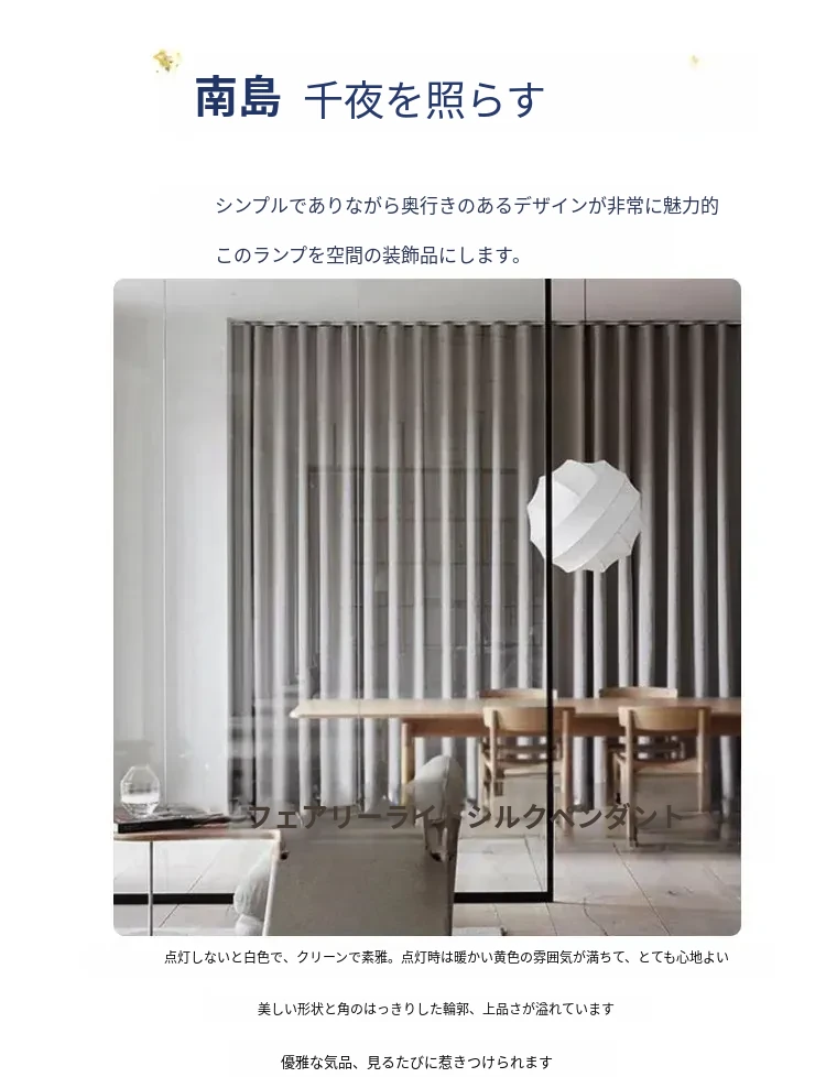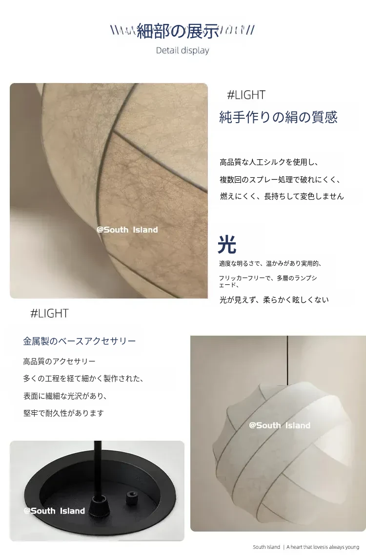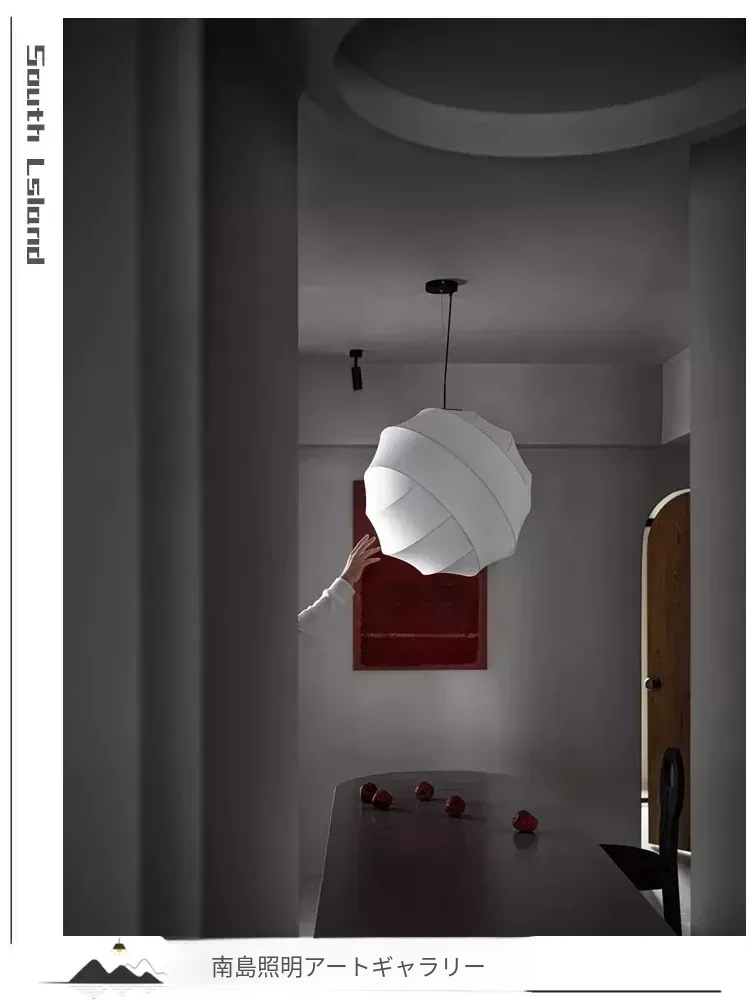 侘寂スタイルのシルク製レストラン用ペンダントライト - 北欧・和風デザイン、クリーミーな色合いで、リビングや寝室にぴったり。モダンでシンプルな書斎用のフェアリーライトとしても最適!