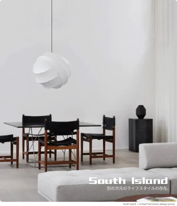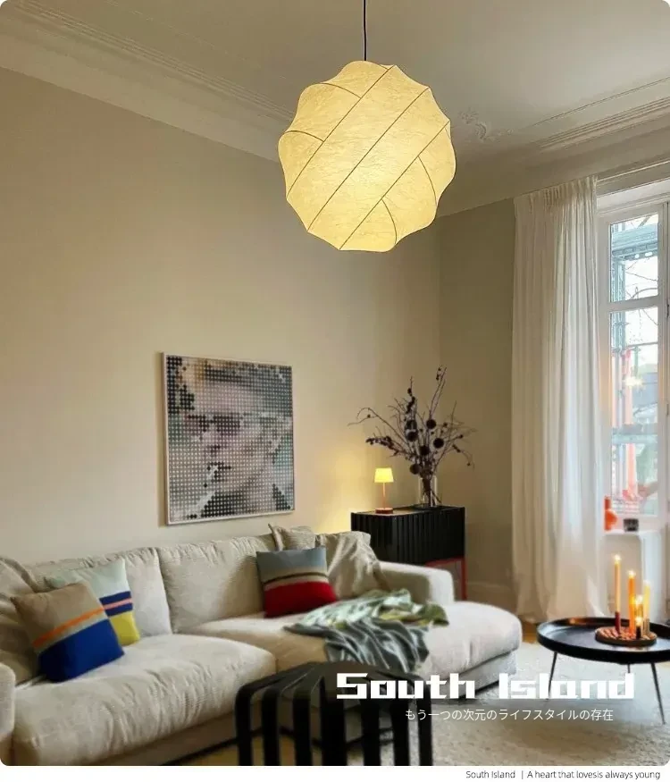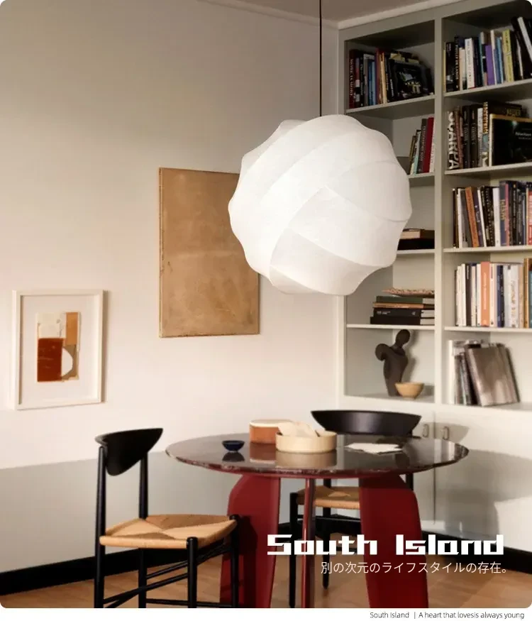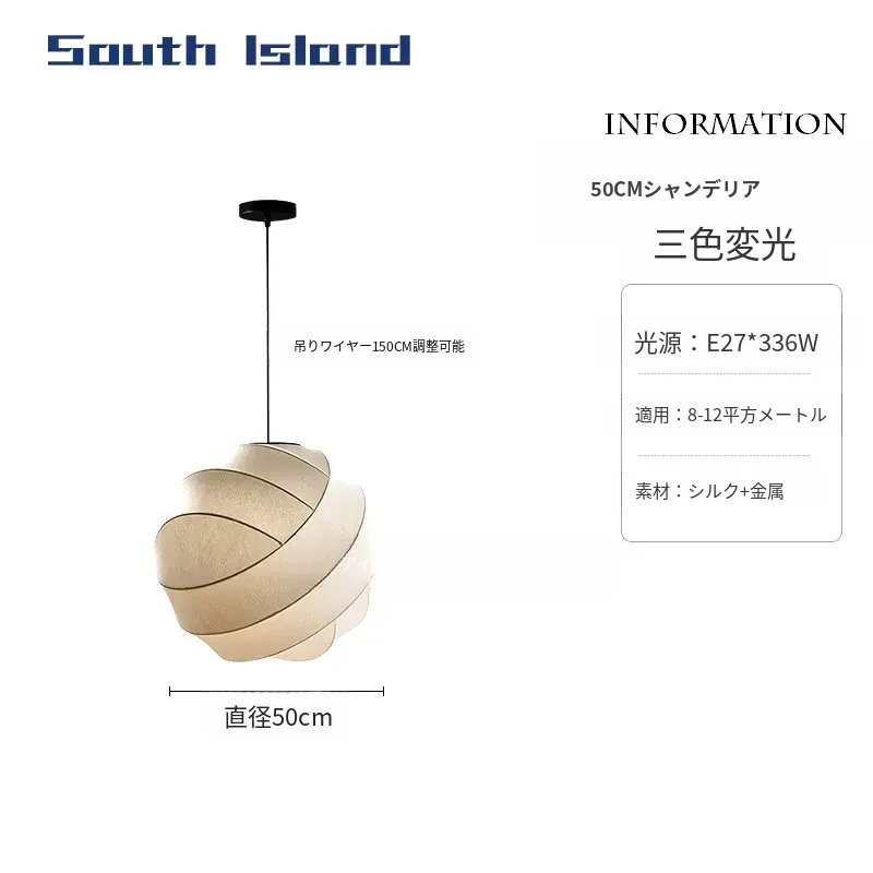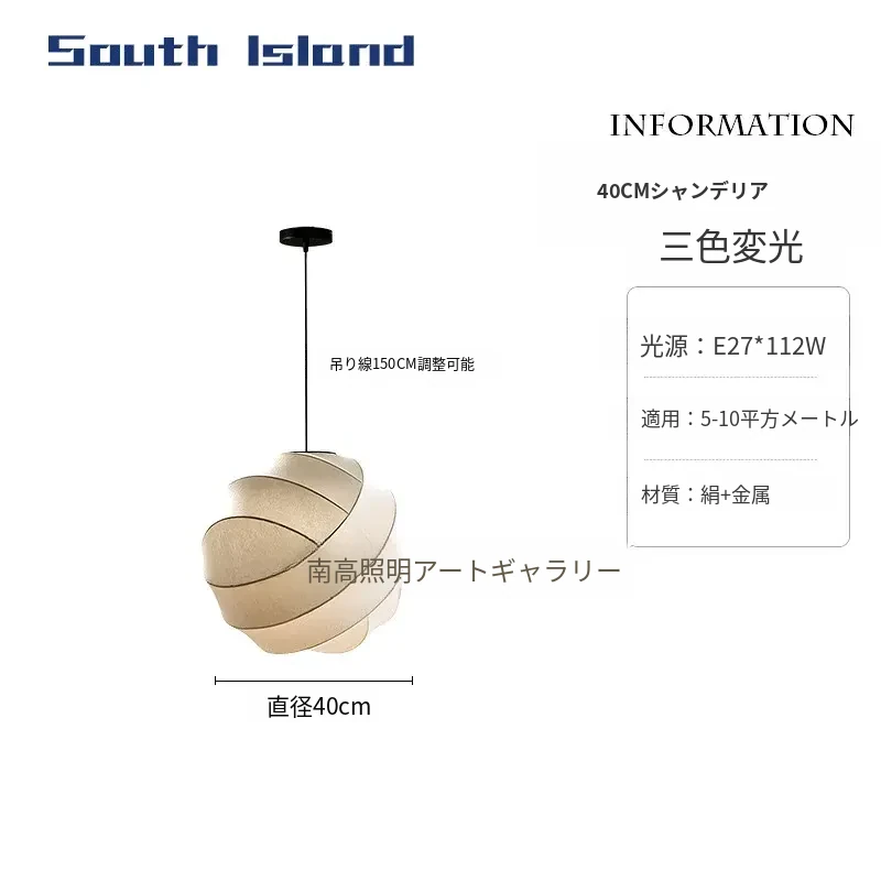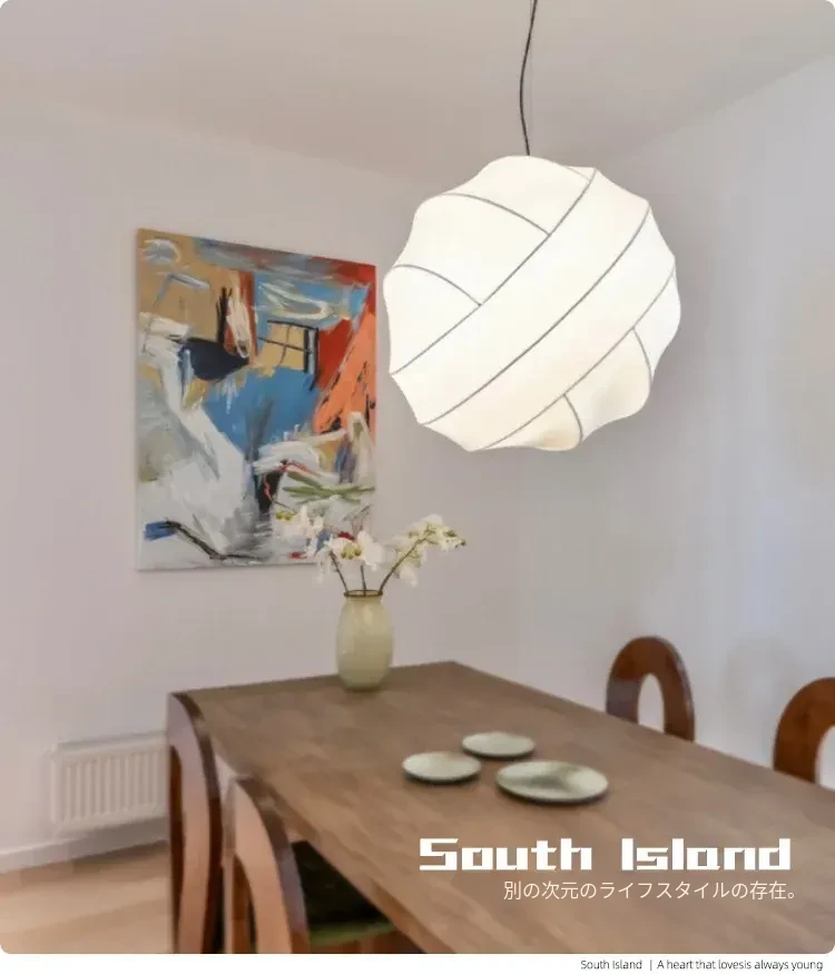 侘寂スタイルのシルク製レストラン用ペンダントライト - 北欧・和風デザイン、クリーミーな色合いで、リビングや寝室にぴったり。モダンでシンプルな書斎用のフェアリーライトとしても最適!