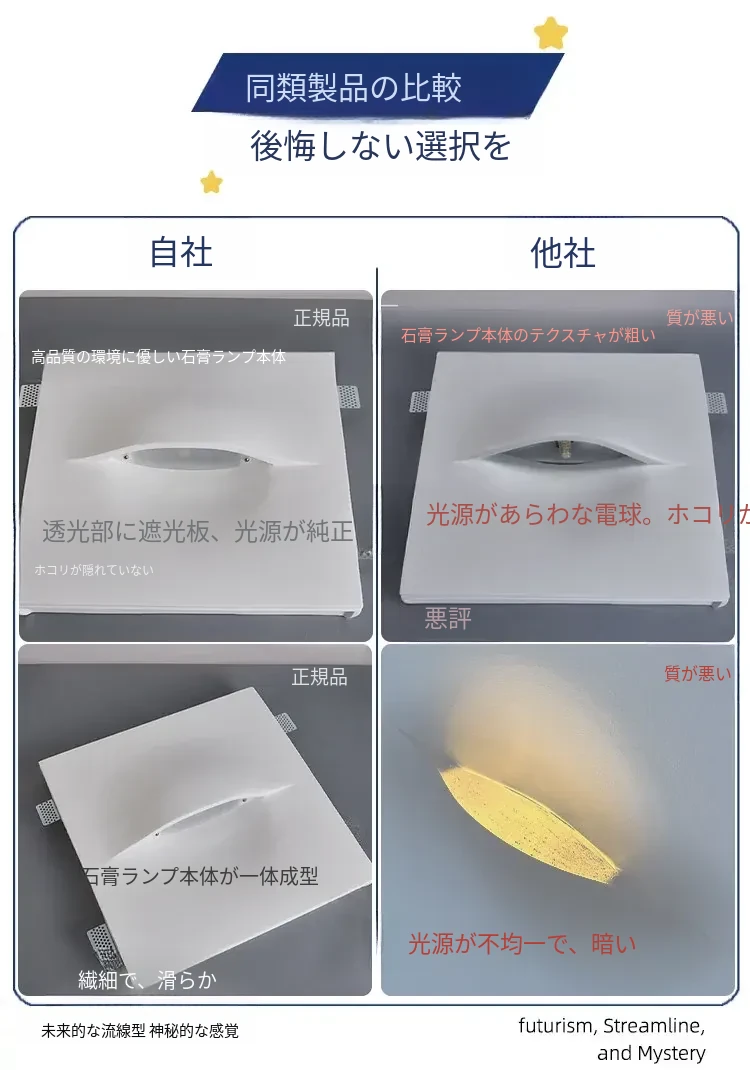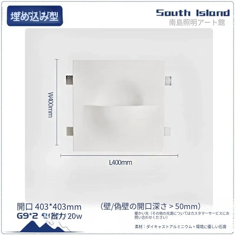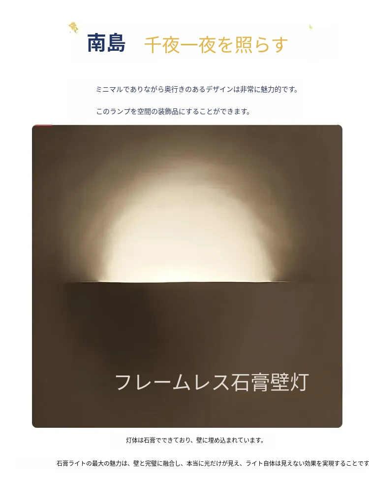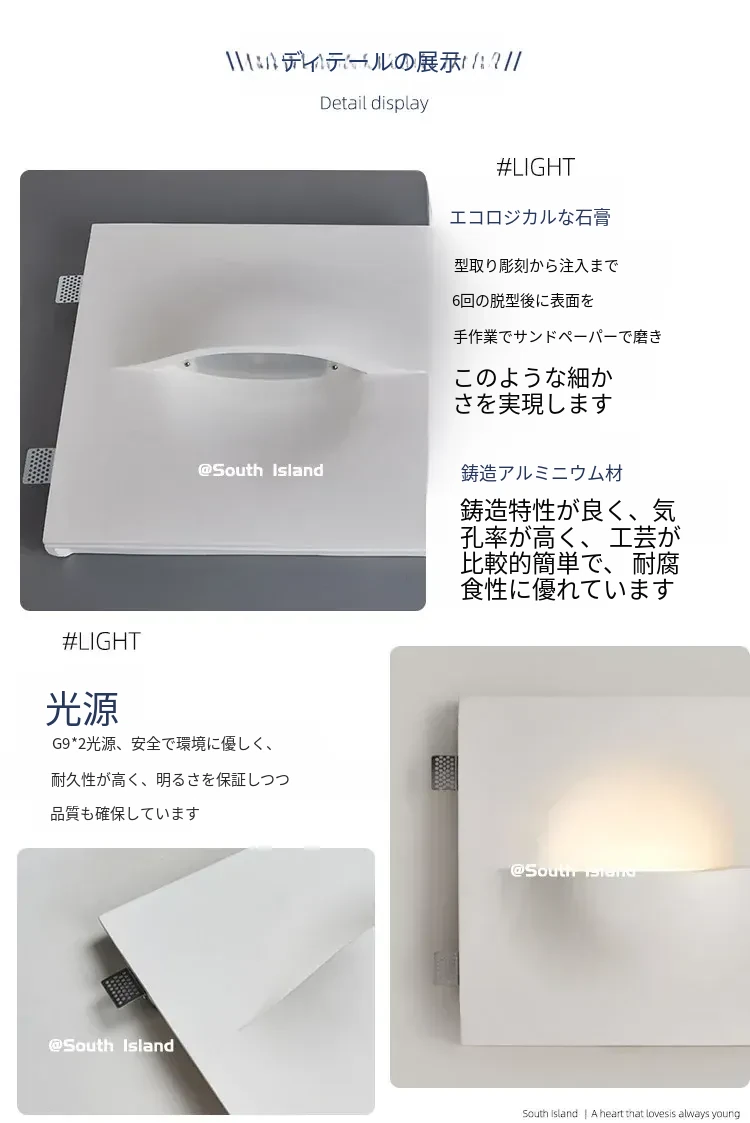 侘寂スタイルの埋め込み型フレームレス石膏ライト - リビング、廊下、シンプルな背景壁、寝室のベッドサイドに最適な照明装飾!洗練されたデザインで、心地よい空間を演出します。