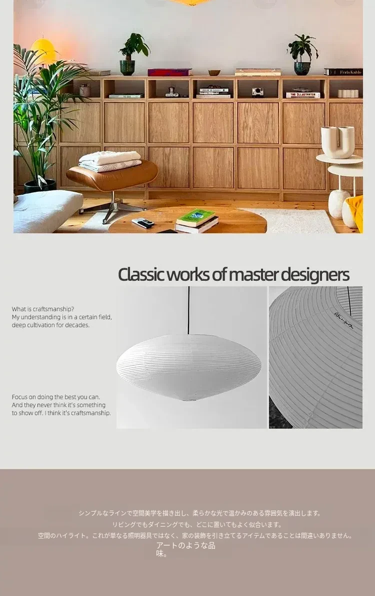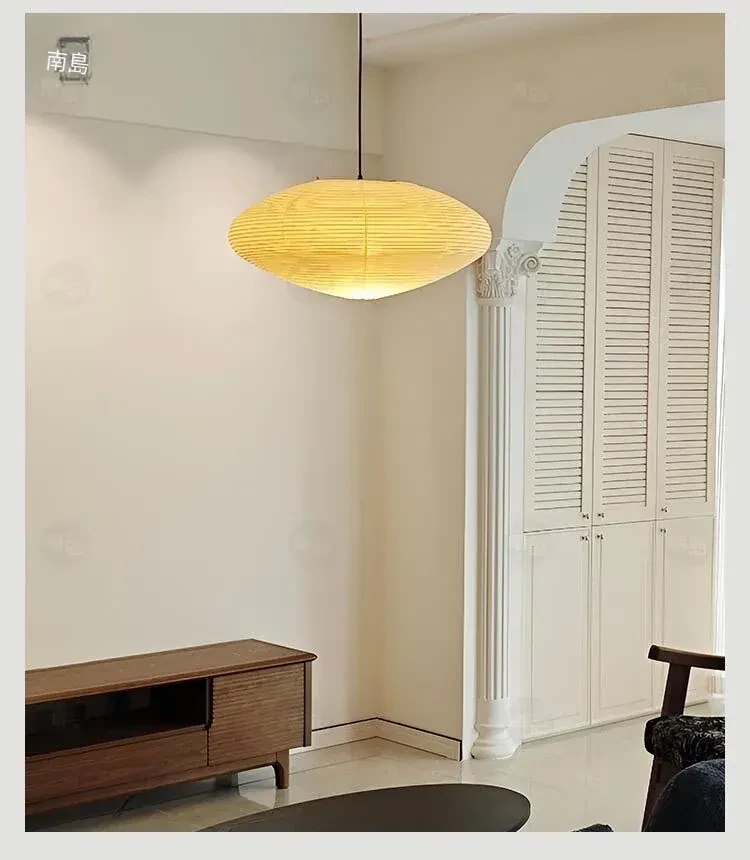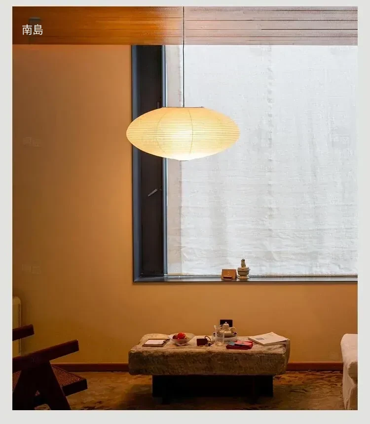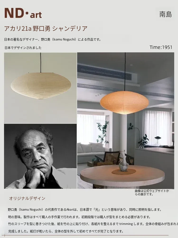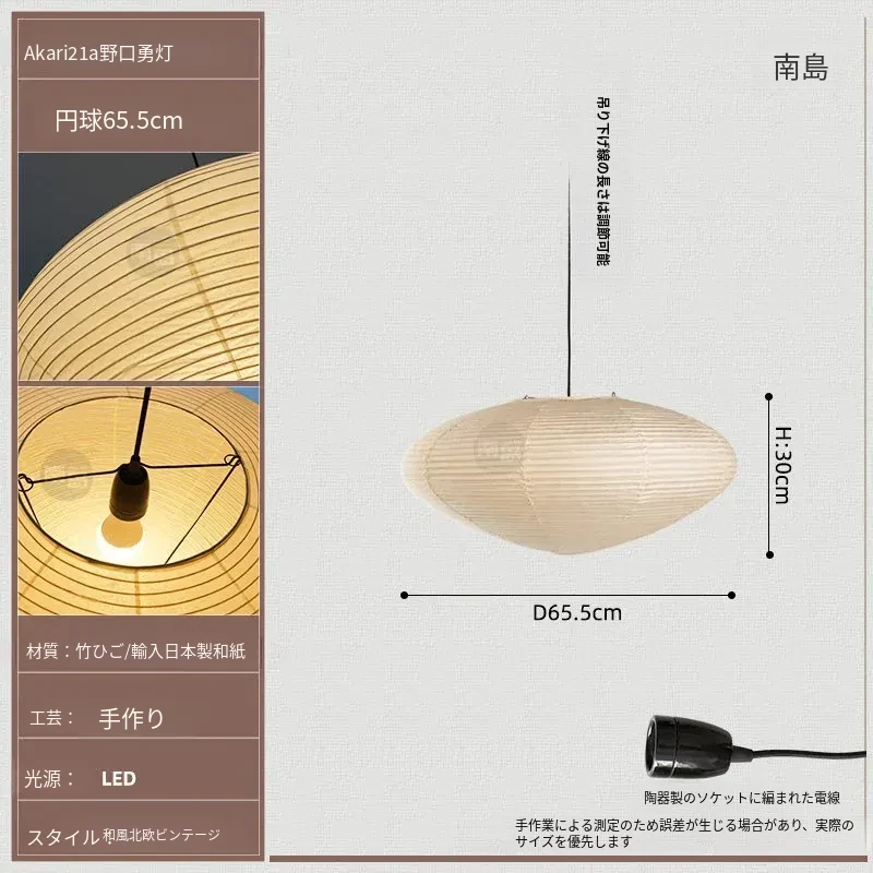 野口勇のakari照明21A 中古品 - 侘寂の美を感じる和紙ペンダントライト、リビング・寝室・ダイニングにぴったりな日本の伝統的な照明。心を癒す温かな光で、特別な空間を演出します。