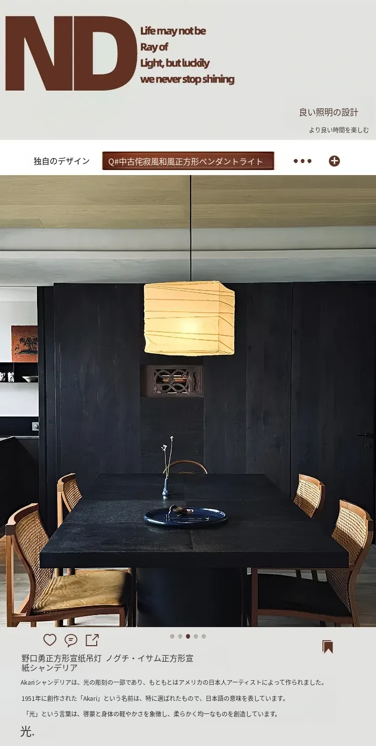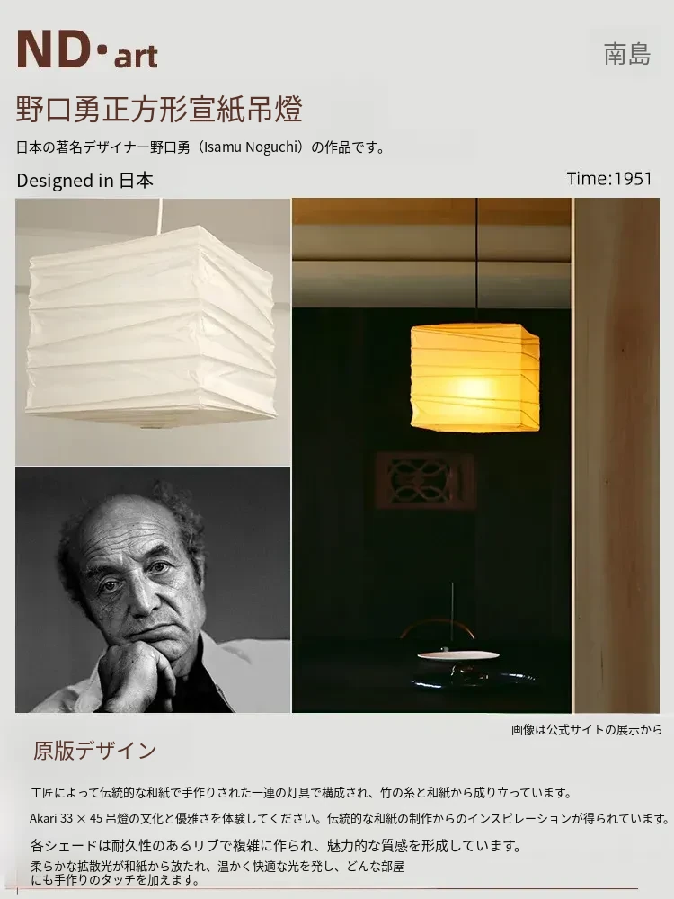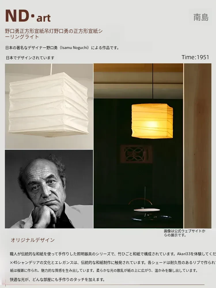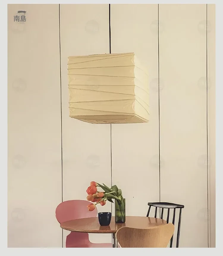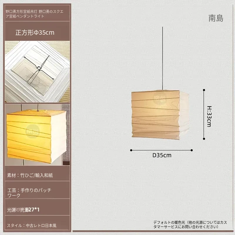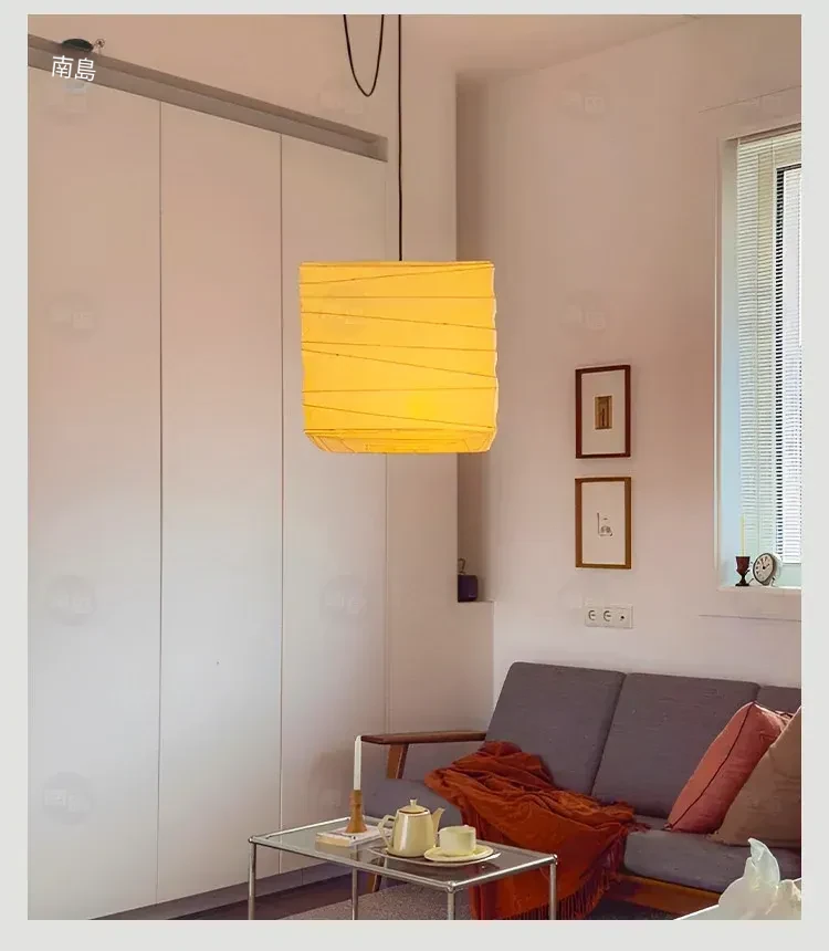 野口勇のスクエア和風ペーパーランタン - レトロな和食レストラン用吊り灯、侘び寂びスタイルの民宿やリビング、寝室に最適な照明器具!心落ち着く空間を演出します。