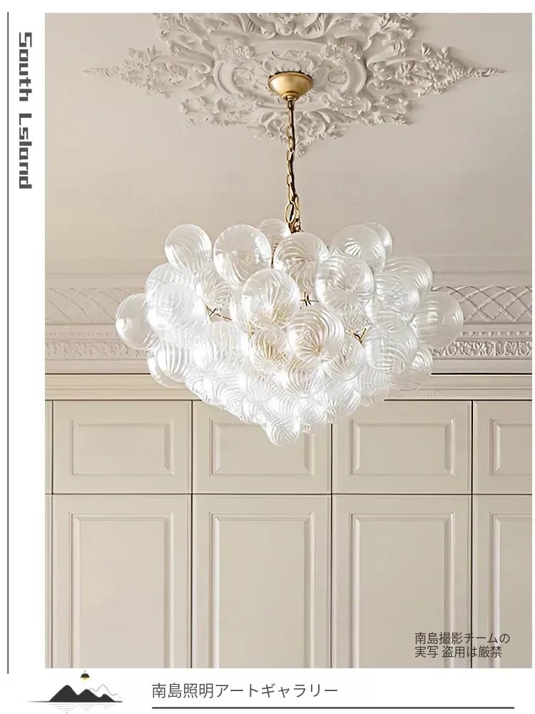 アメリカンスタイルの全銅ガラスボールペンダントライト – ラグジュアリーな空間を演出する、別荘のリビングやダイニング、フレンチスタイルの寝室にぴったりなバブルライト。