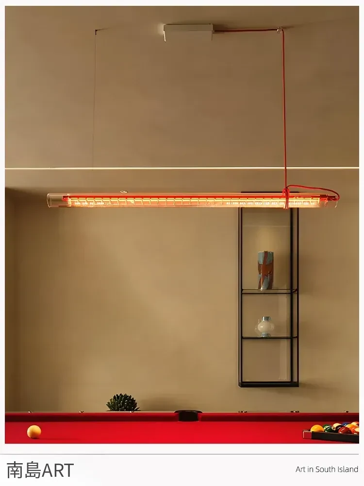 ドイツ・マウラー製 モダンシンプルなレストラン&書斎向け ロングバー透明ガラス 赤いペンダントライト