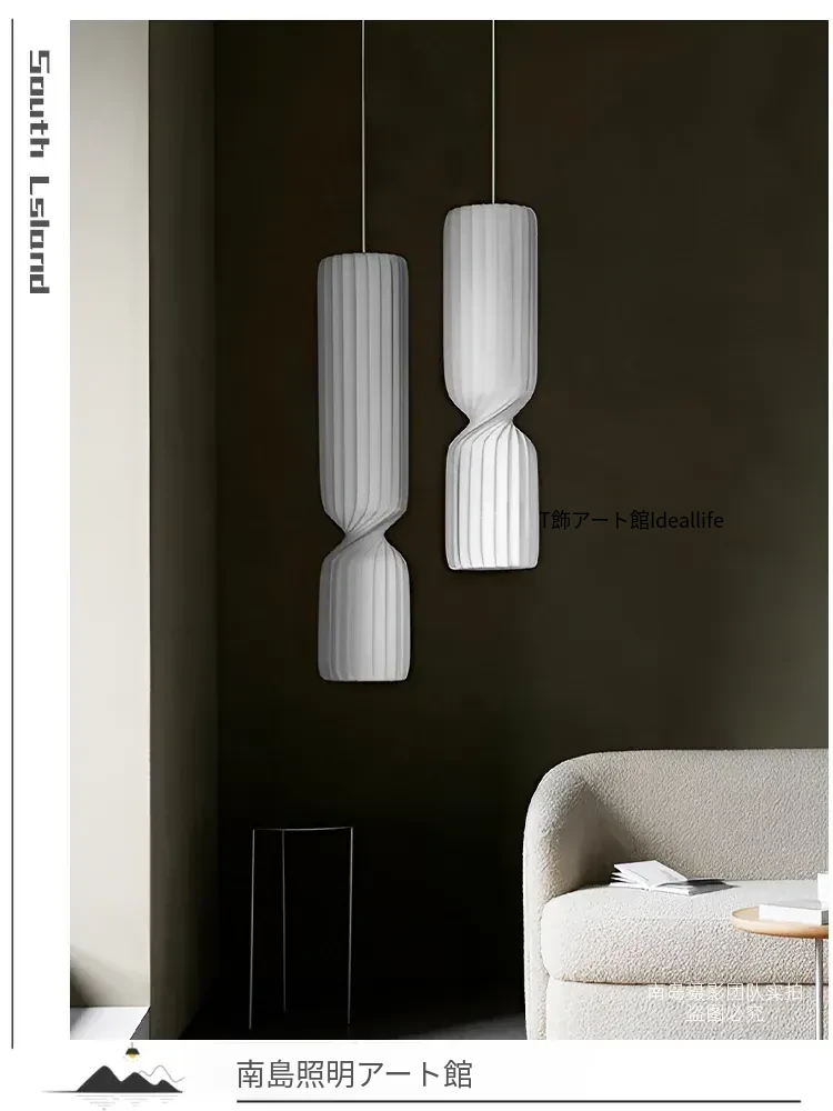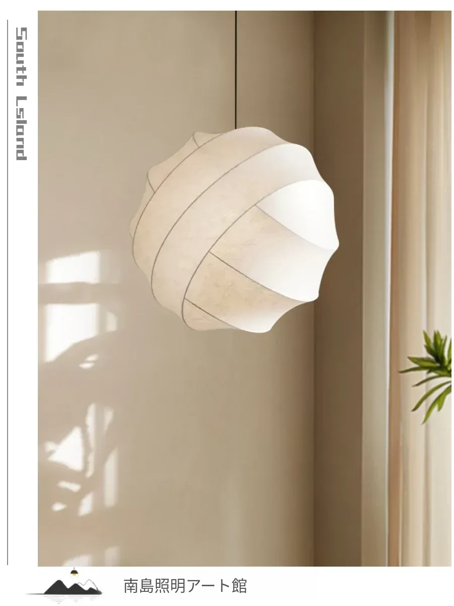 侘寂スタイルのシルク製レストラン用ペンダントライト - 北欧・和風デザイン、クリーミーな色合いで、リビングや寝室にぴったり。モダンでシンプルな書斎用のフェアリーライトとしても最適!