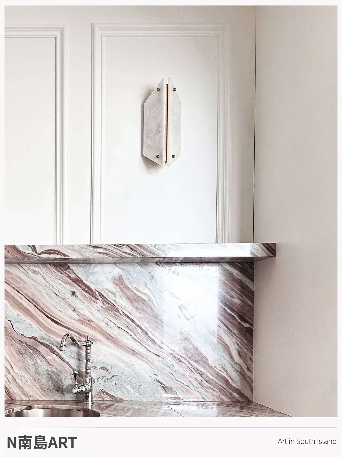 中古のVivien Onyx壁灯 - フランス風のヴィンテージデザイン、リビングルームの背景壁にぴったりな大理石壁灯。アメリカンスタイルの寝室や廊下にも最適。優雅さと温もりを演出!