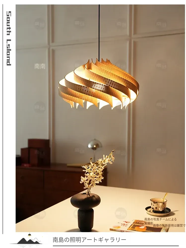 中古ヴィンテージ 螺旋型レストラン吊り下げライト 侘寂スタイルのレトロデザイン 書斎・寝室・バーに最適な天然木製の月明かりランプ