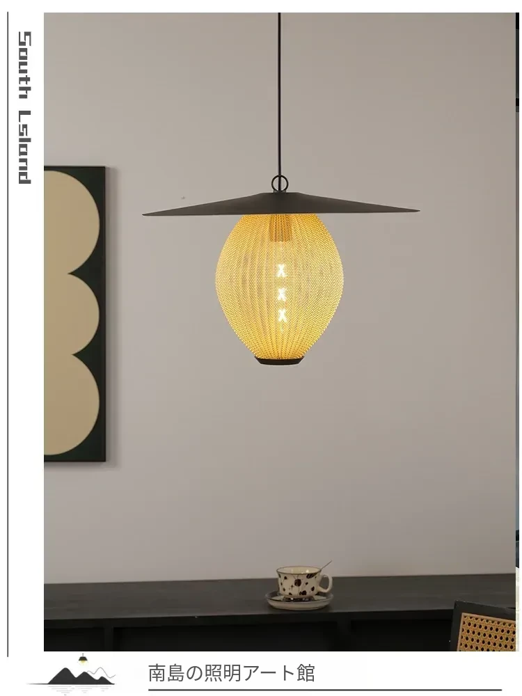フランス風Audo HASHIRAレストラン・寝室用ヘッドボードアートリネン製、和風レトロデザインの侘寂スタイルペンダントライト - おしゃれで落ち着く空間を演出!